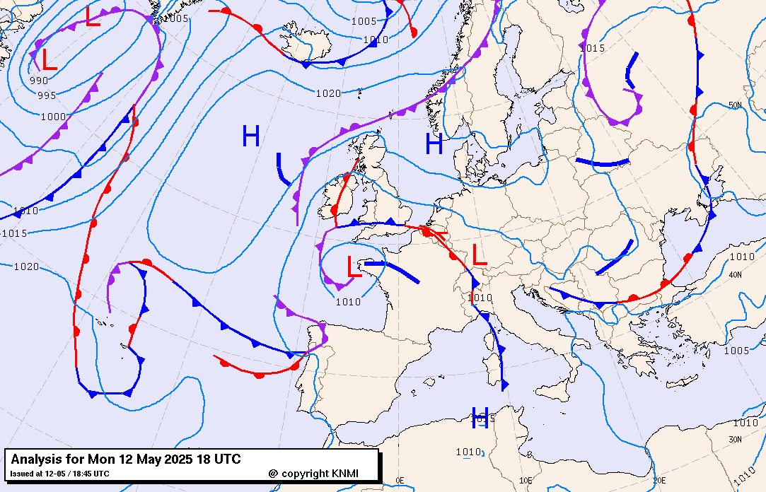 Wat een onweer deze avond over centraal en west-België! Dat het zou onweren werd wel verwacht, een golvend front bij een laag met de kern bij de punt van Bretagne met er vooruit een convergentielijn bewoog langzaam noordwaarts om in de avond zowat van zuidoost naar noordwest over België te liggen. Het zou Nederland niet bereiken, door hogedrukinvloed zou het front in de nacht weer "teruggeduwd" worden naar het zuiden.