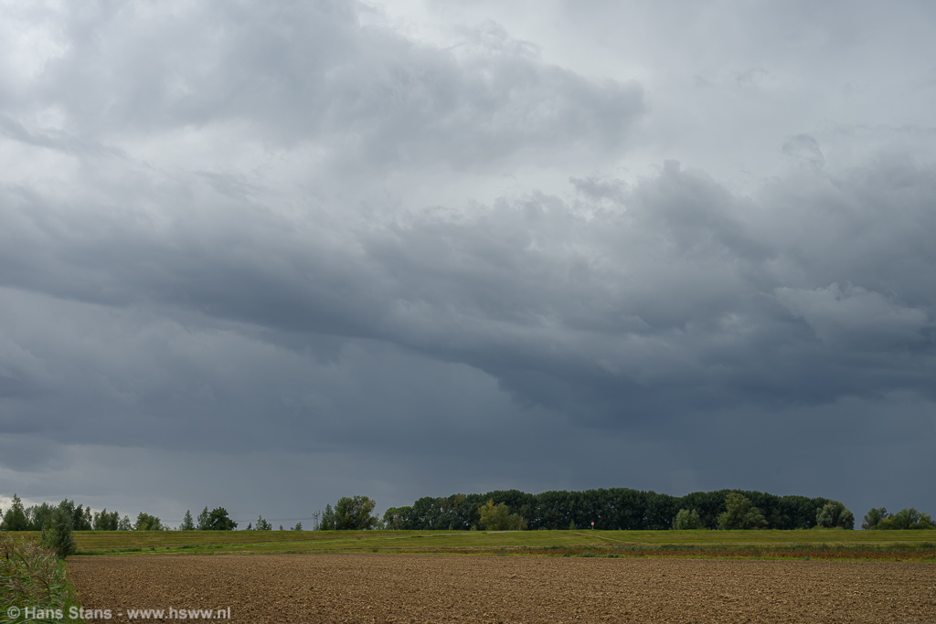 Hierboven en onder: er waren wat losse kernen net zuidelijk van mijn positie voor de lijn uit ontstaan en ik was wat bezorgd dat die hier de zaak zouden komen verstoren. Maar toen fel onweer en zware neerslag vanuit het zuidwesten mij naderden was het toch de lijn zelf; de shelf moet dus op gang gebracht zijn door een eerdere cel westelijk van me.