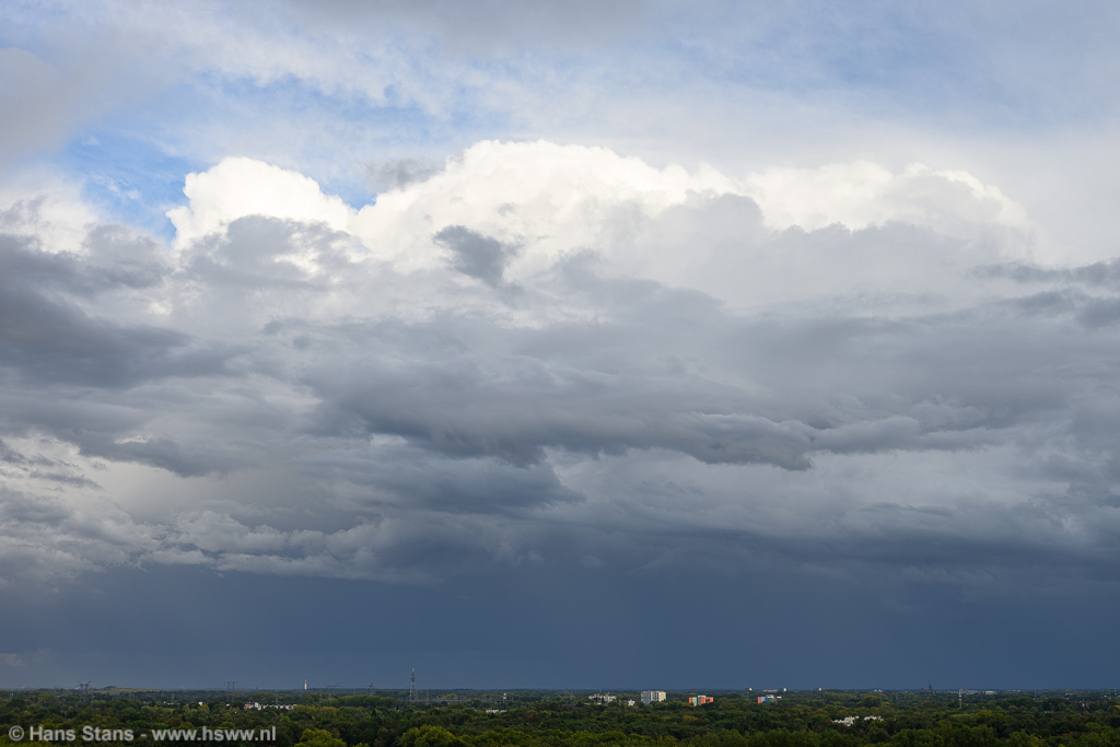 Om 15:55 zie ik via de app een foto van een prachtige cel vanuit Papendrecht en volgens mij zie ik diezelfde cel van de zijkant (foto hieronder). Maar het bracht me ook aan het twijfelen, sta ik wel westelijk genoeg? Maar verplaatsen durfde ik in deze fase niet, kans dat ik zo de neerslag in zou rijden en/of te weinig tijd zou hebben om weer oostelijk voor de buienlijn uit te komen.