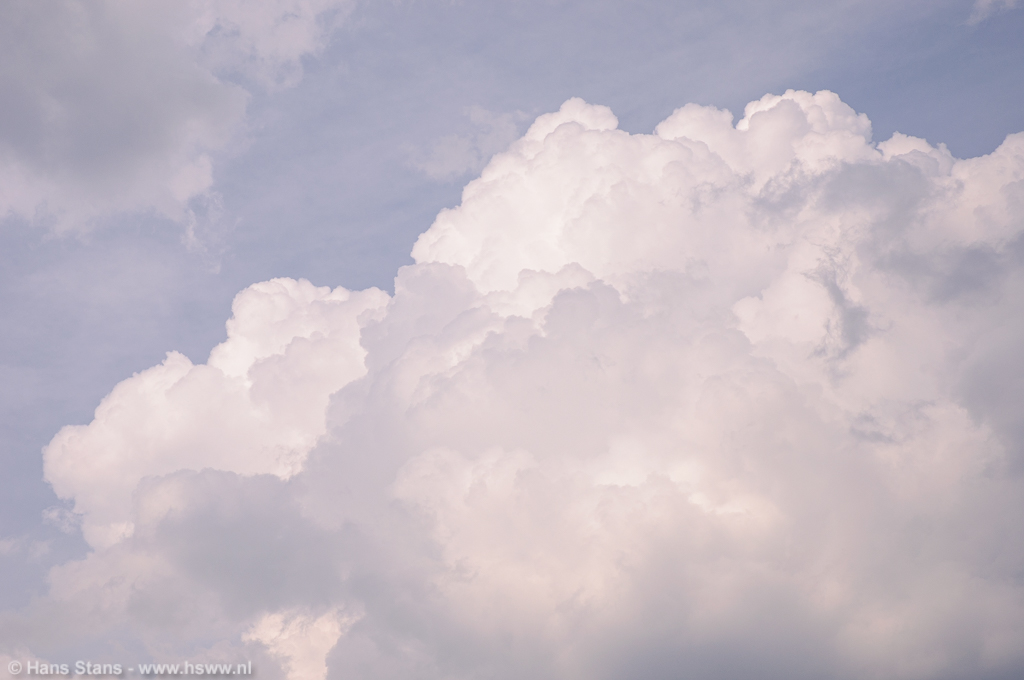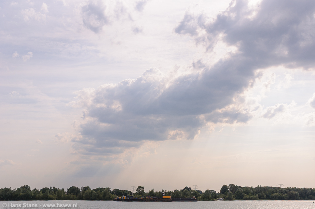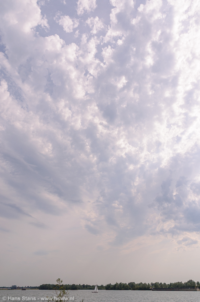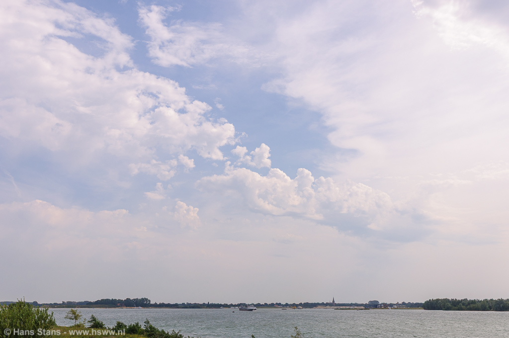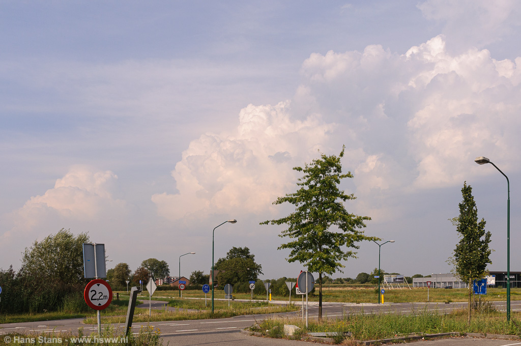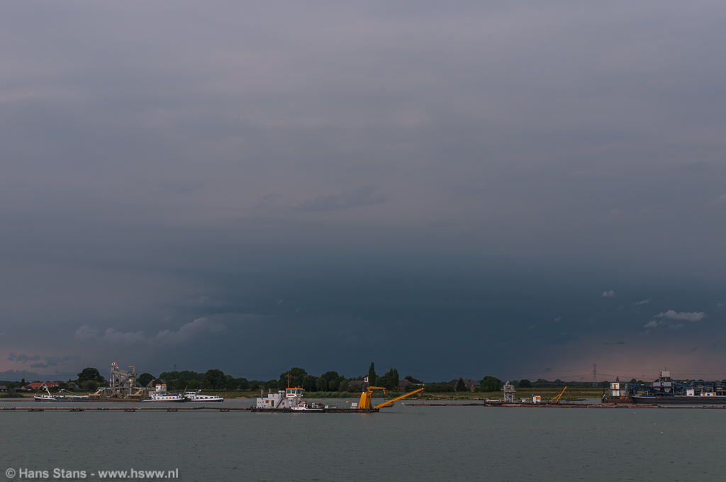 Als ik nu alleen op pad was geweest zou ik direct door het Maaslandschap (goed zicht) in westelijke richting de lijn tegemoet zijn gegaan. Ik zie de buien graag bij daglicht en hoe eerder bij de buien hoe beter, want door de voortdurende toestroom van koelere lucht en dagelijkse gang neemt de onstabiliteit af. Maar goed, samen uit en samen thuis: in meerderheid werd besloten de lijn af te wachten vanuit (de inderdaad prima) zichtpunten bij de Plassen te Cuijk. Terug daarheen dus en we zagen een imposante rij aambeelden verschijnen over de hele westelijke horizon: