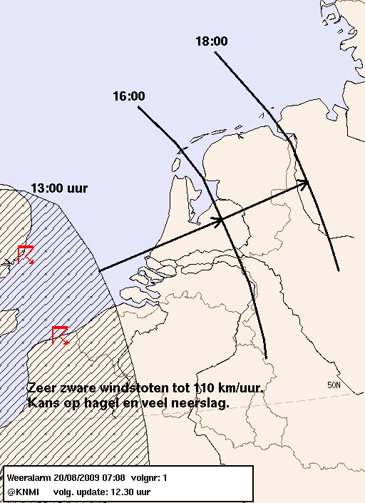 Gezien de grote kansen op zware windstoten, hagel en veel neerslag kwam het KNMI al vroeg met een Weeralarm:
