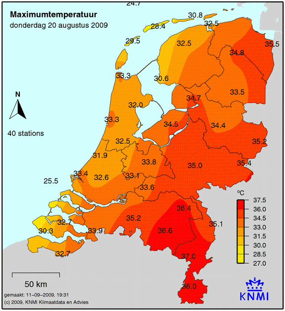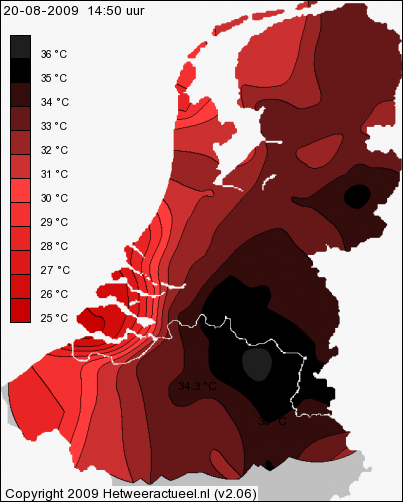De maxima van deze dag, 37°C te Ell!