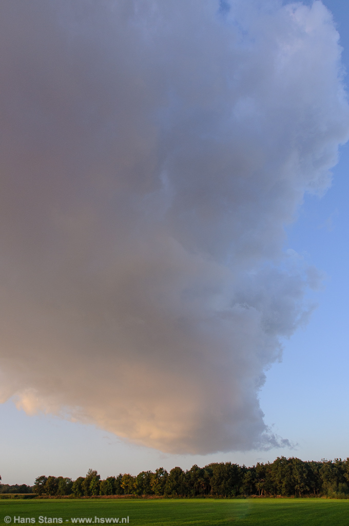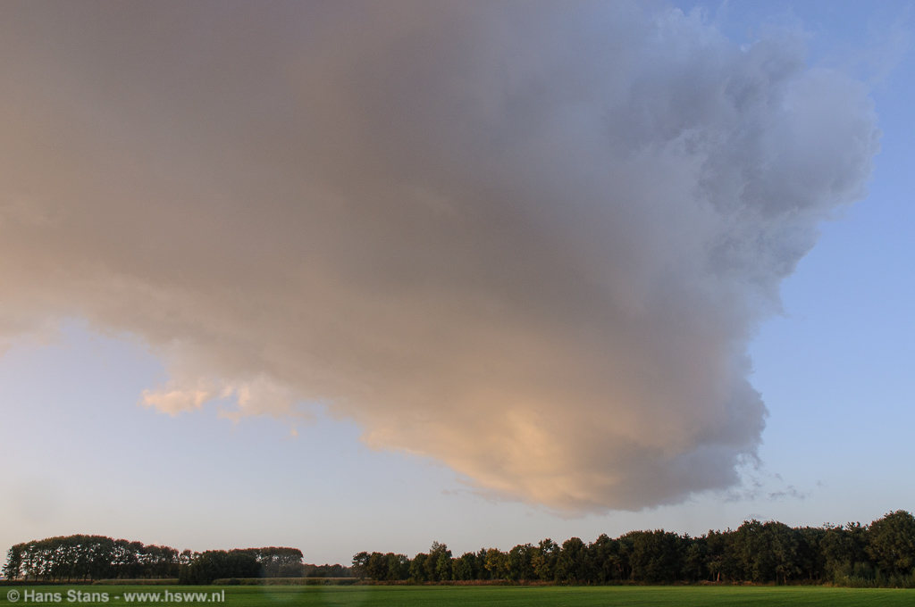 Eenmaal op het zichtpunt was snel duidelijk wat er aan de hand was, uit een ver overhangende wolk viel nog wat lichte regen. In mijn beleving een verder oplossend bui-restant. Ik was eigenlijk iets te ver doorgereden om nog een regenboog te kunnen zien, maar vond de wolk wel mooi en dus werden er foto's gemaakt: