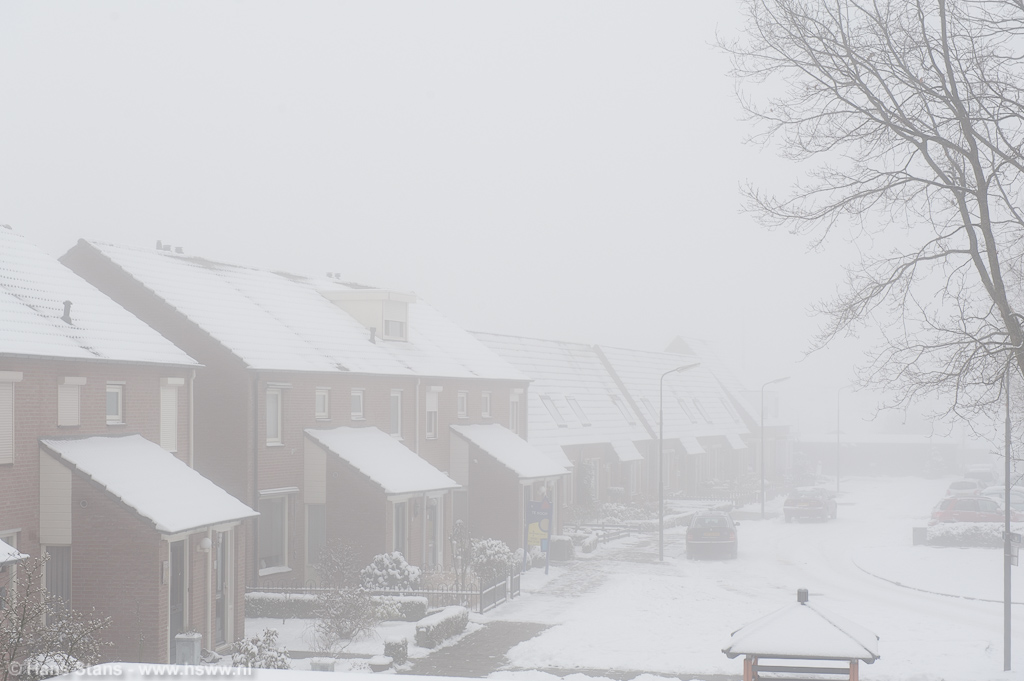 De foto's zijn rond 13:00 gemaakt. Het zicht schommelde zo van 75 tot 150 meter, maar het valt niet uit te sluiten dat het buiten de bebouwde kom misschien af en toe nog wel minder was.