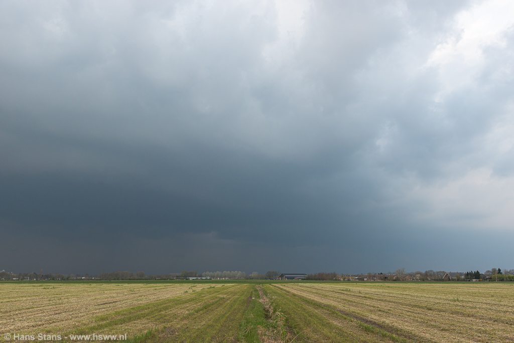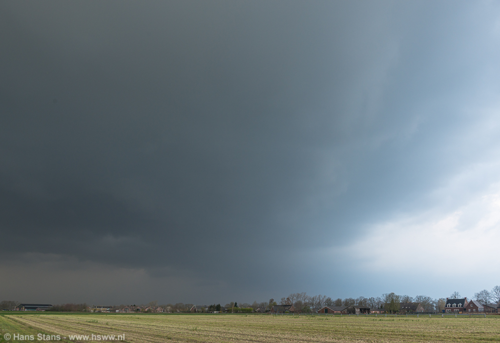 Juist na 17:00 arriveerde de lijn bij Veghel en ik ging er even op uit voor foto's. Het beeld was bijna onwaarschijnlijk donker en blauw en de door bestrijdingsmiddelen verkleurde velden droegen verder bij aan het wat onwerkelijke beeld. Veel activiteit zat er verder niet (meer) op, vnl. veel outflow wind en vijf ontladingen op afstand. Maar: I'll take it, want smaakt naar meer! Op naar de volgende kans.