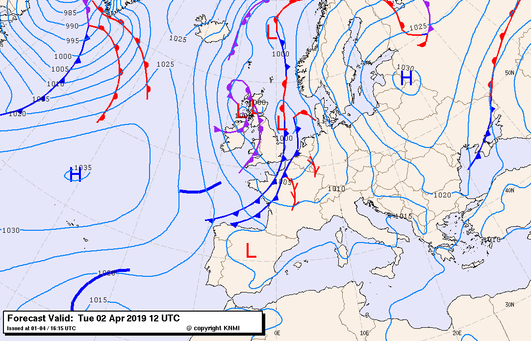 Vooruit een activerend koufront werd vanuit het zuiden warme en vochtige lucht aangevoerd. Bovendien liep een vore voor het front uit mee, zodat dus zowel convergentie voor het front als het koufront foci waren voor vorming van (onweers-)buien. Het KNMI waarschuwde (code geel) voor de buien met kans op hagel en windstoten erbij. Estofex kwam met een level-1 over het zuidoosten "mainly for severe convective wind gusts".