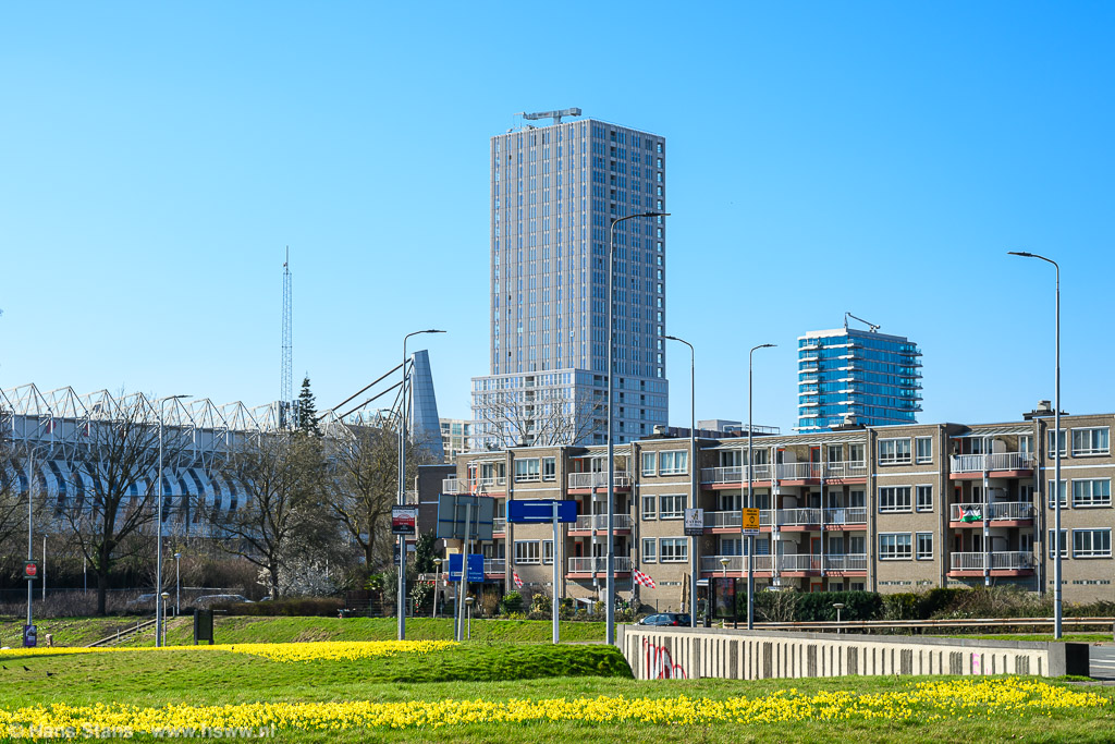 Hartje New York (79mtr), Eurostate (102mtr) en Het Atelier vanuit de Glaslaan.
