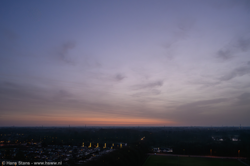 Maar het effect met de zon erbij viel toch tegen, kennelijk nog niet echt veel stof over ons land (foto gemaakt tegen half acht).