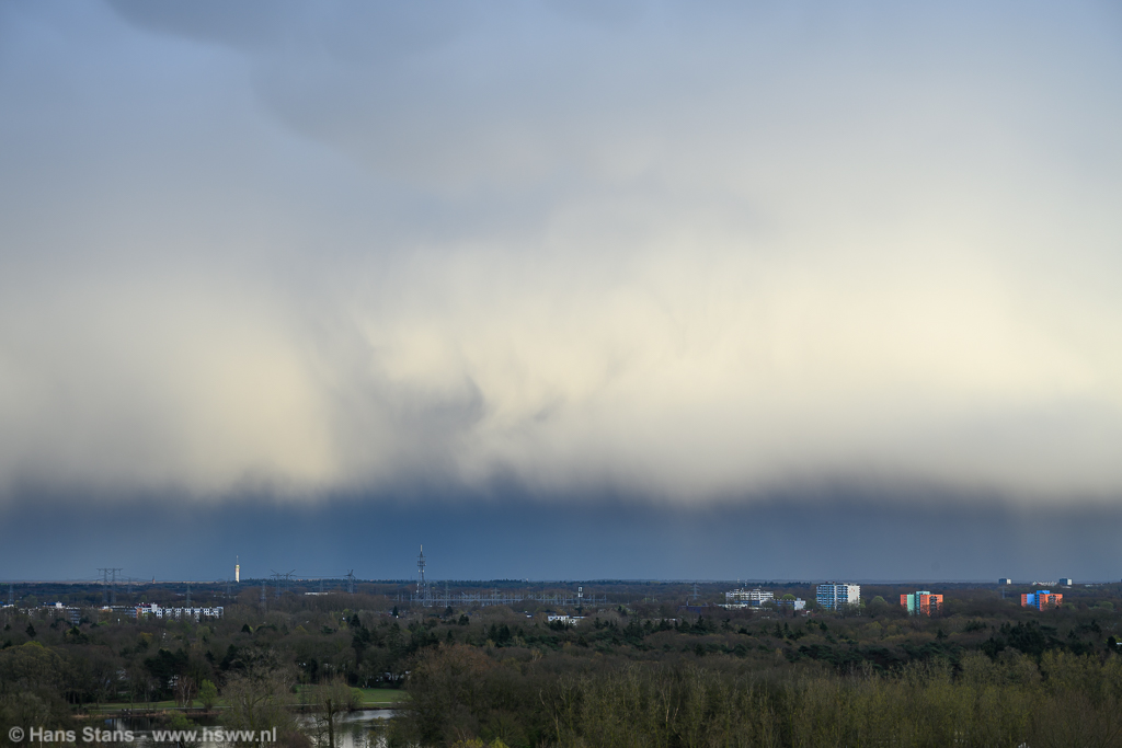 Bij de occusie was i.i.g. te zien dat erg wat meer structuur in de buien begon te komen, met o.a. deze arcus - al is die nog zeker niet van 'zomers gehalte' 😀: