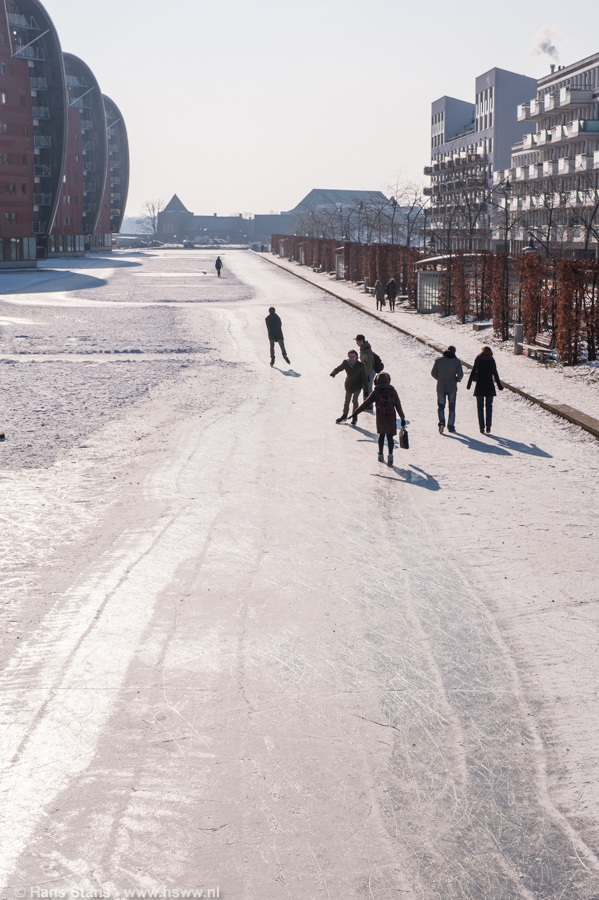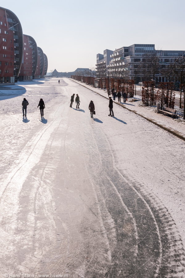 Met alle vorst kan (nee: moet volgens velen 😀) er geschaatst worden, maar v.w.b. de grotere wateren levert dat nog steeds een wat gemengd beeld op. Heel anders is dat natuurlijk op kleinere plekken, in het Paleiskwartier te Den Bosch had de gemeente het ijs op het dak van de parkeergarage geveegd zodat er een prima schaatsbaan ontstond waarvan meteen de jeugd dankbaar gebruik maakte en grappig genoeg ook best veel kantoorpersoneel tijdens lunchtijd!