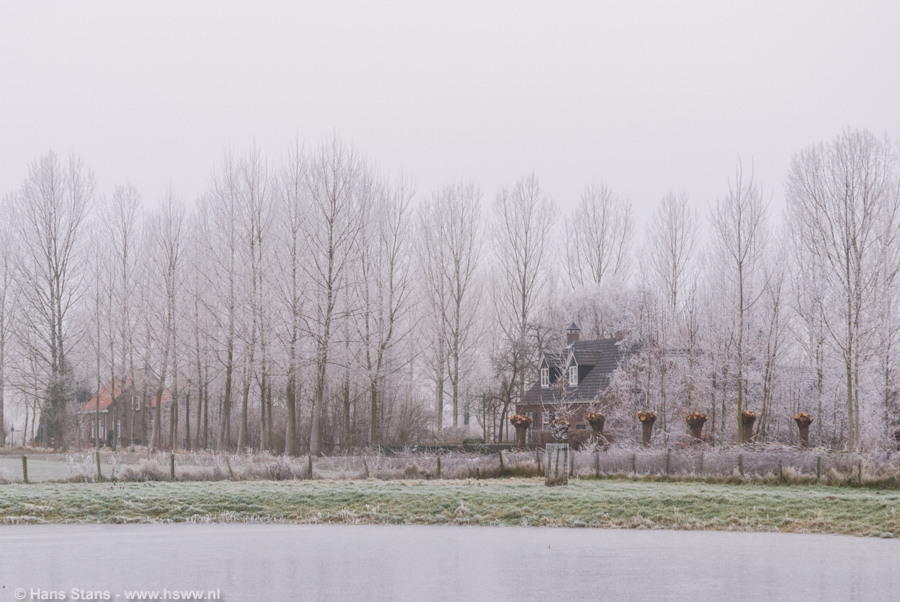 We zitten nog steeds onder het deksel van een hogedrukgebied boven onze omgeving, diverse gepubliceerde metingen geven aan dat het met de luchtkwaliteit meer en meer de verkeerde kant opgaat... Wel wordt het voortdurend langzaam kouder, de voorbije twee dagen een maximum temperatuur van 0°C, de laatste twee nachten matige vorst (-5.2°C en -5.7°C). Hierdoor neemt het ijs toe en ook zien we meer en meer rijpvorming.