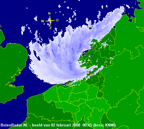 Wat is deze winter tot nu toe weer teleurstellend voor winterweerliefhebbers! Maar vandaag gebeurde dan toch het schier onmogelijke: sneeuw! We waren op de avond van 1 febr. al aan het wachten op de passage van een storing welke boven Engeland al voor de nodige winterperikelen had gezorgd. Tot genoegen 'groeide' (activeerde) het verhaal nog wat toen het op weg was naar midden en zuid Nederland. Gezien de (geringe) marge op de bovenluchttemperatuur was het maar de vraag wat het zou worden: regen of sneeuw, en zo ja, droge of natte sneeuw? Het enige wat zeker was dat een aanzienlijke hoeveelheid neerslag kon worden verwacht.