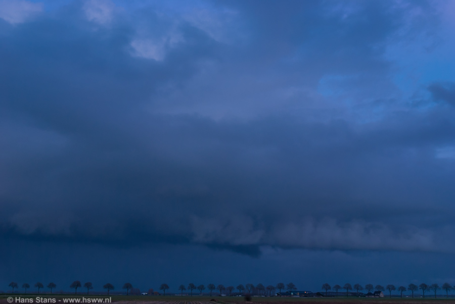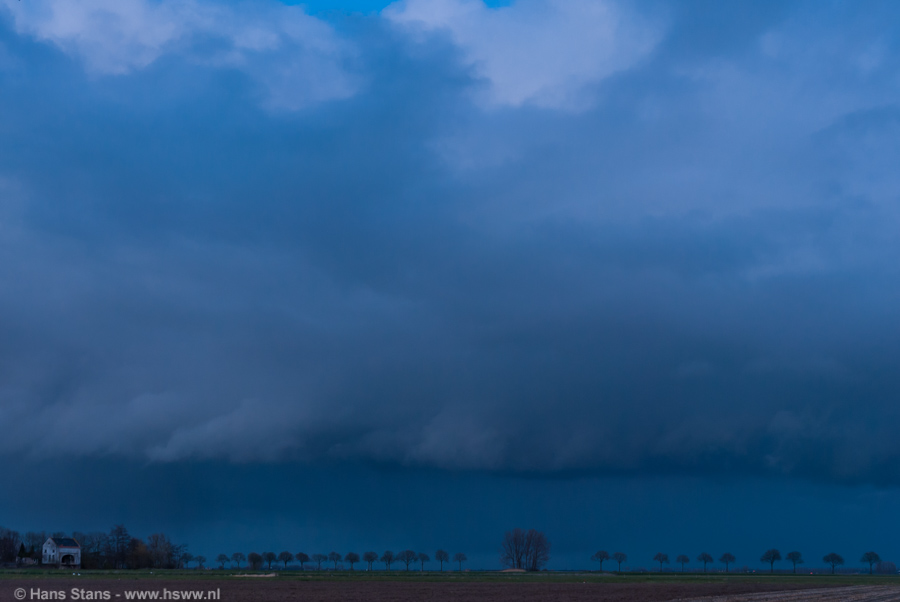 Het was een prachtig gezicht zo in het rivierenlandschap, ik hoop maar dat het een beetje overkomt in de foto's! Vw.b. de hoogte (of liever het gebrek daaraan...) van de buien: er was inderdaad sprake van veel ondiepere convectie in het zuiden van NL.