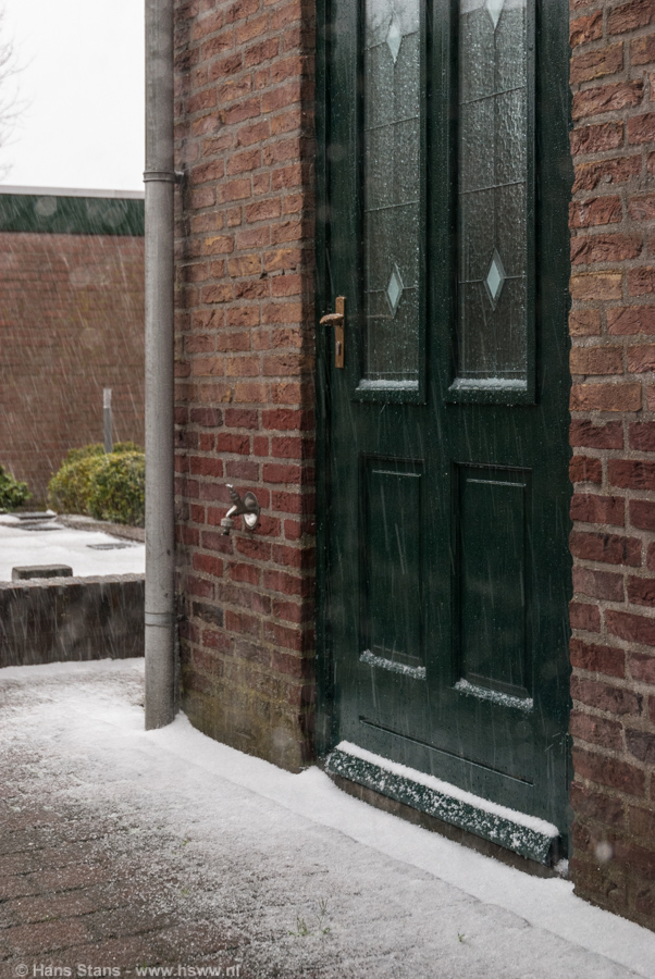 Vandaag en gister maartse buien, al zou vandaag de aangekondigde sneeuw vrijwel geheel uit regen te blijken bestaan. Na 13:00 echter een forse hagelbui die het presteerde om binnen drie minuten een nagenoeg volledig gesloten hageldek neer te leggen: