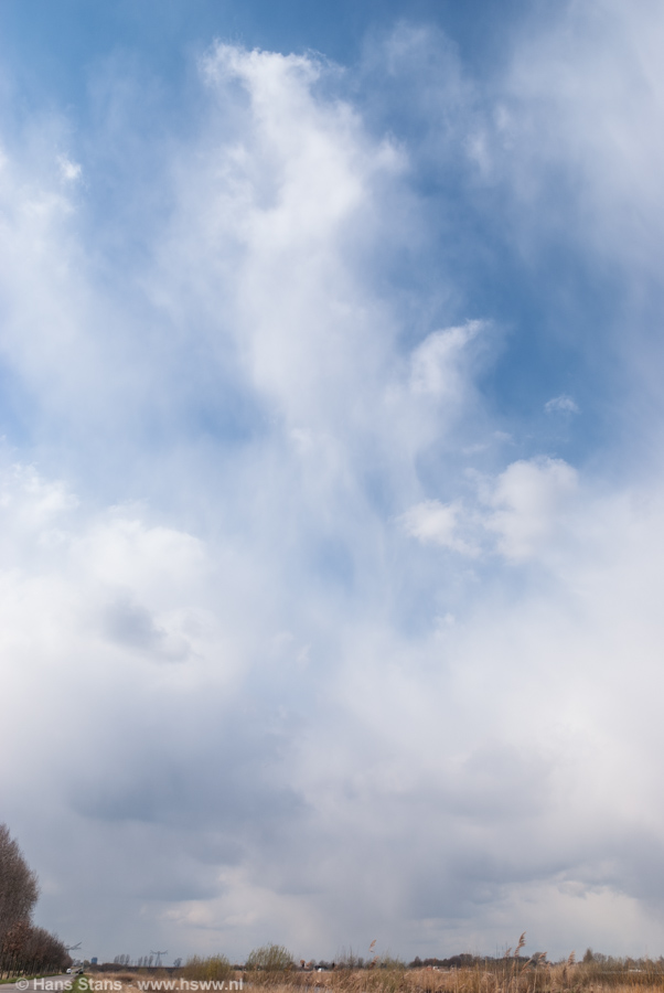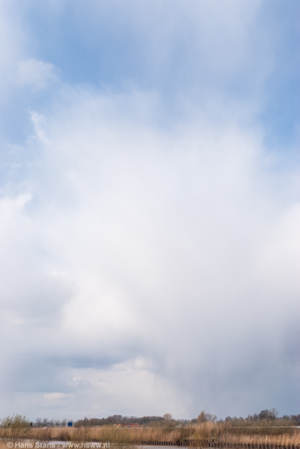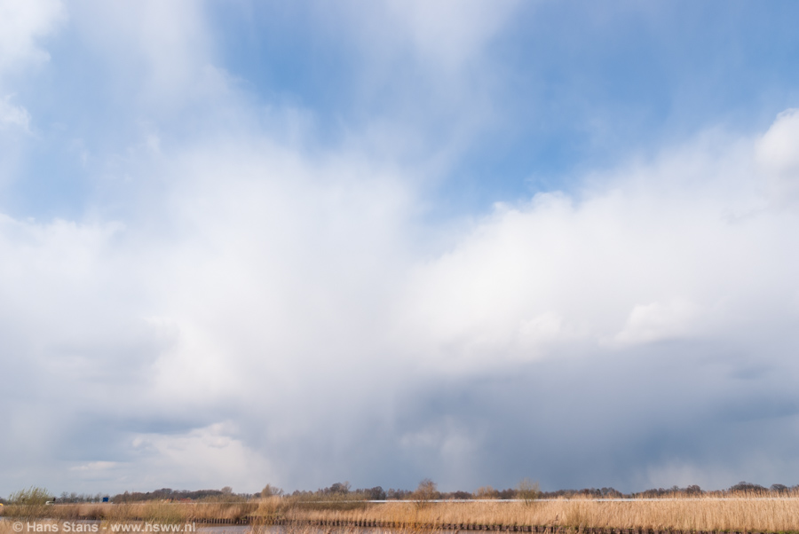 Op deze 1e Paasdag werden ook weer de nodige maartse buien verwacht, tegen/op de avond zou bij inmiddels tot rond nul gedaald temperaturen zelfs een sneeuwdek kunnen ontstaan. Zeer tot mijn ongenoegen nog niet echte mooie witte, verijsde maartse cb's kunnen fotograferen. Ik was vastbesloten: als er maar een enkele fotogenieke bui in de buurt zou komen zou die voor m'n cameralens langs moeten!!