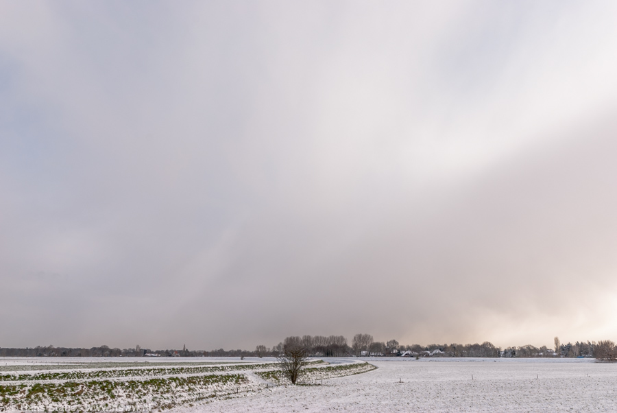 De temperatuur was daarbij -1.3°C. Ik besloot eerst even te ontbijten en de komende bui uit te zitten, ik vond het nog niet licht genoeg voor de sneeuwfotografie. Was best wel spannend, ik had echt het gevoel 'het moet allemaal in een keer goed', hoe vaak zien we hier nog een mooi vers sneeuwdek bij een temperatuur onder nul?