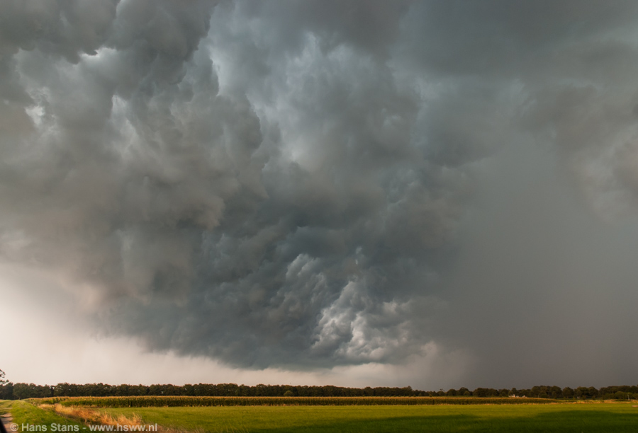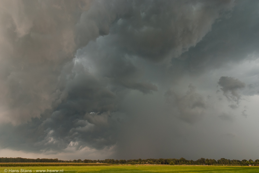 Dat laatste heeft natuurlijk ook weer een andere kant. Zowel uit Nederlands als Belgisch Limburg werd de nodige schade en overlast gemeld. Ook in Noord-Brabant was het raak, blikseminslagen in Eindhoven en Boxtel, en heel dichtbij mijn chase-locaties, namelijk te Haaren en Oisterwijk, gingen bomen om waarbij wegen versperd raakten. In Helvoirt dumpte de bui 31mm neerslag met ondergelopen straten tot gevolg. Gelukkig was er, voorzover mij bekend, geen sprake van slachtoffers of persoonlijk leed.