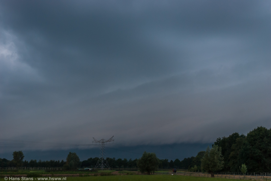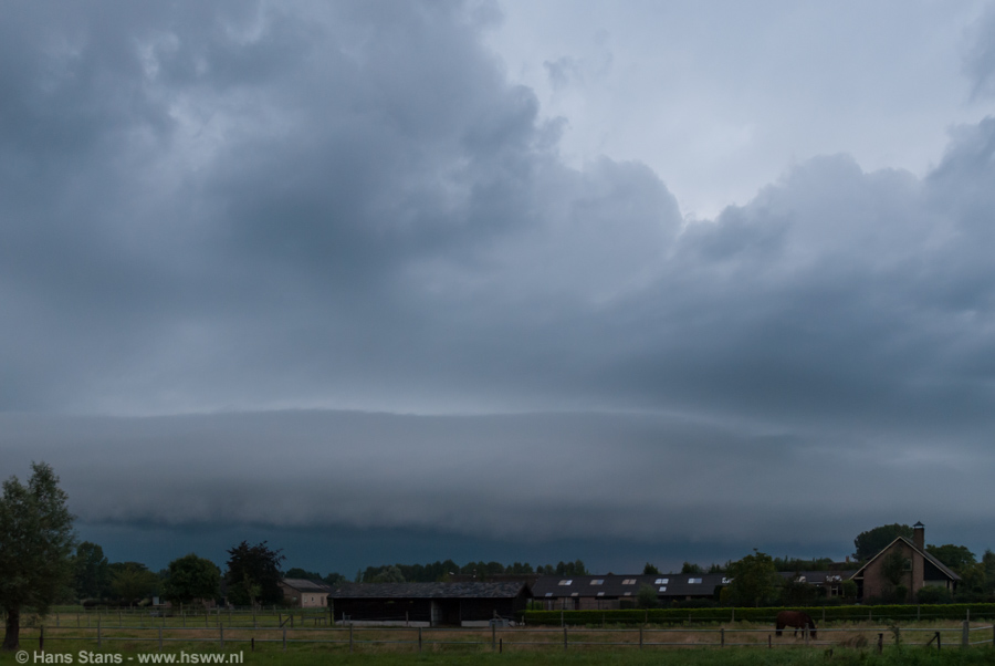 Op de laatste foto is de gelaagde structuur van de shelfcloud het beste zichtbaar. Voor verdere foto's kreeg ik niet de kans, het werd toch echt te donker....