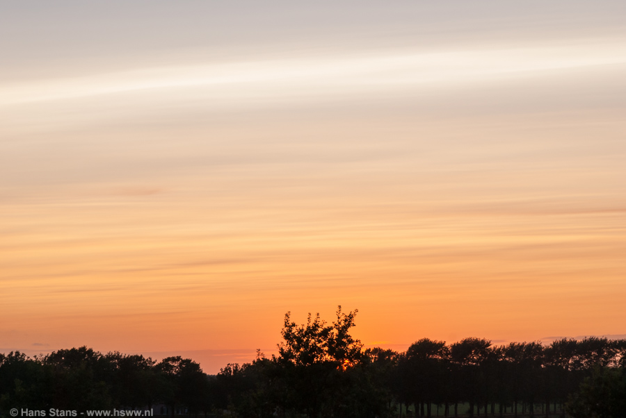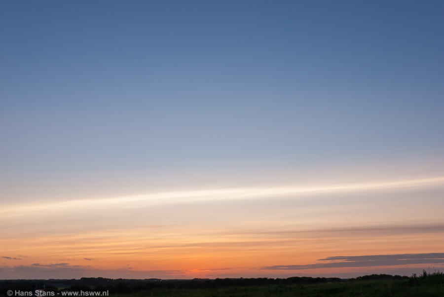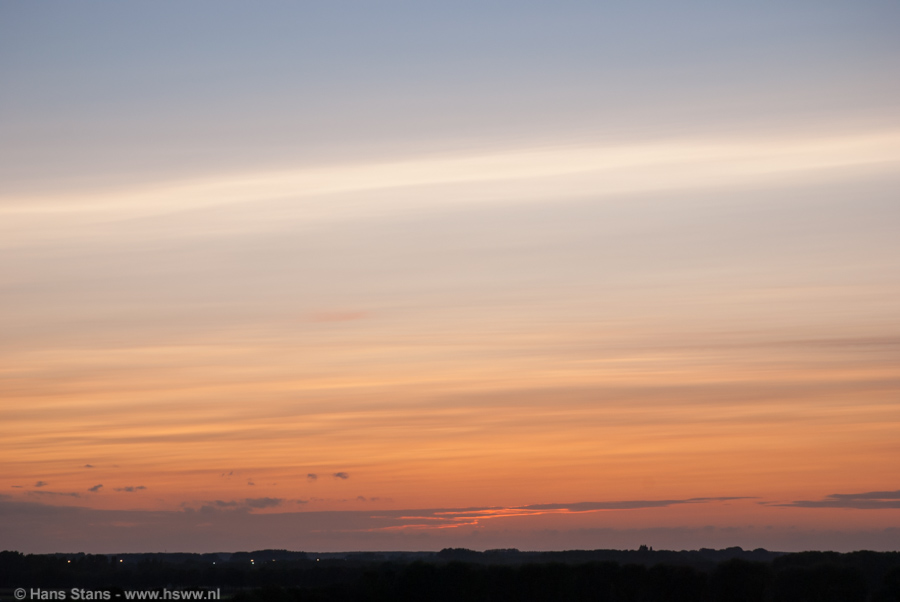 Gisteren barste vulkaan Kasatochi gelegen ten westen van Alaska uit en dat bracht de nodig vulkaanstof en zwaveldioxide (SO2) hoog in de atmosfeer. Er werd verwacht dat dit vandaag een spectaculaire zonsondergang kon geven dus bijtijds met cam naar de Vlagheide voor foto's. Een bijzonder rode gloed zagen we niet, wel een band opvallend lichte en witte cirrus (?) en diep in de schemering streperig rood boven de horizon. De beelden moeten het verhaal zijn: