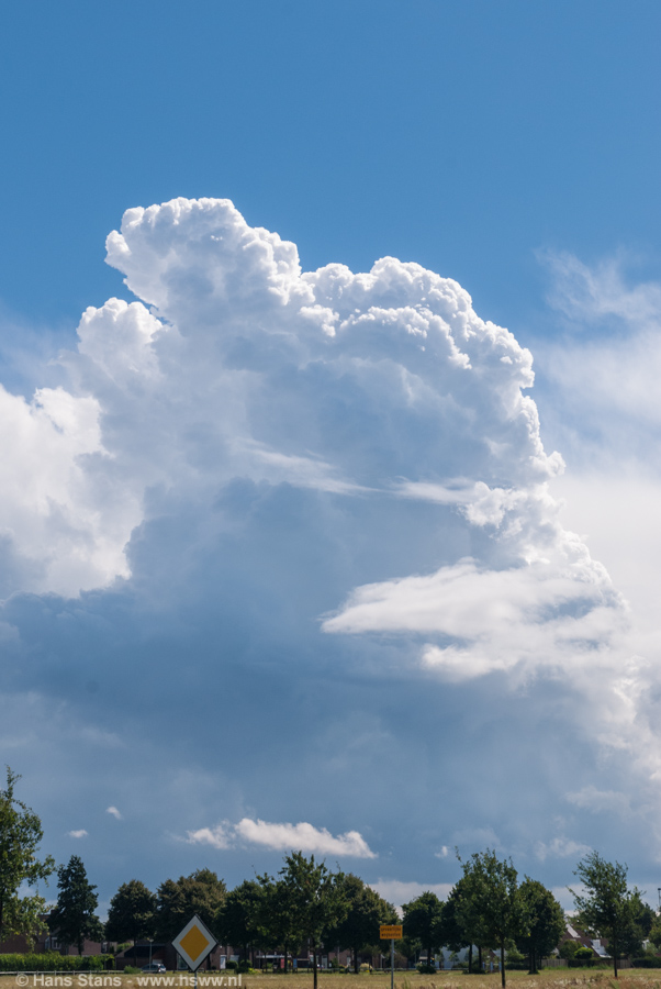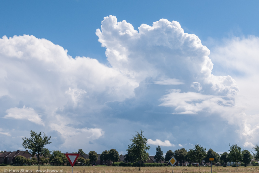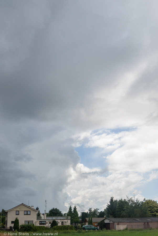 13:03 Nederweert. De 1e foto is er een van de convectielijn in het westen, het effect van windschering is nu mooi zichtbaar bij de overhangende cb: