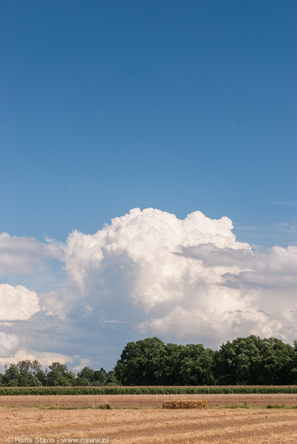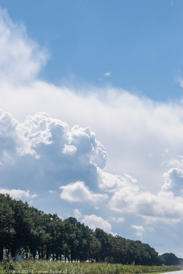 12:53 Langs de Zuid-Willemsvaart. Wauw, achter de gemiste cel zit toch ook hevige convectie. Ik stop even om een paar foto's te maken, waaronder deze: