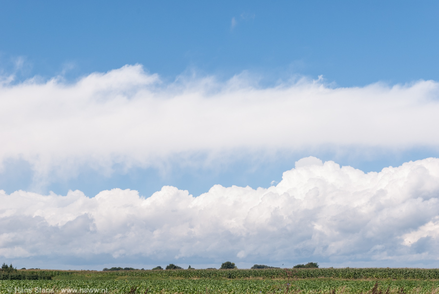 Verderop neem ik in de omgeving van Zijtaart even een foto van een mooie straat cumuli. Nog juist links in beeld een top van de 'nieuwe' cu. torens.