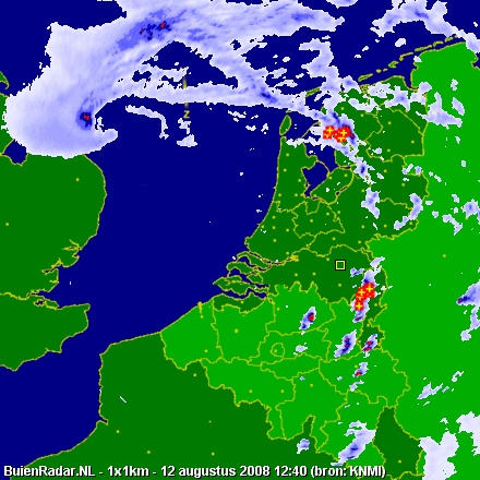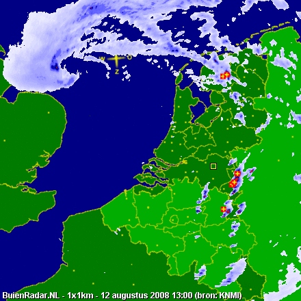 18:35 Een zware cel komt onder Eindhoven de Nederlandse grens over met opnieuw een NO trekrichting. Ik zie het op grote afstand gebeuren, maar met m'n eerdere ervaringen van de dag weet ik dat er naar toe