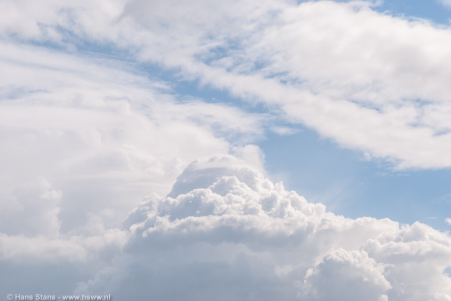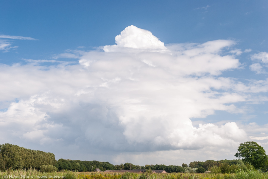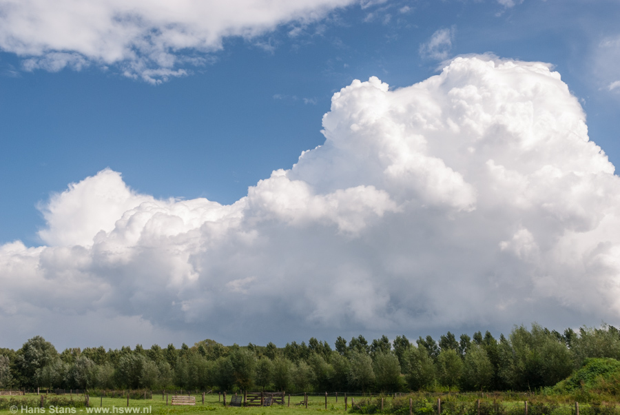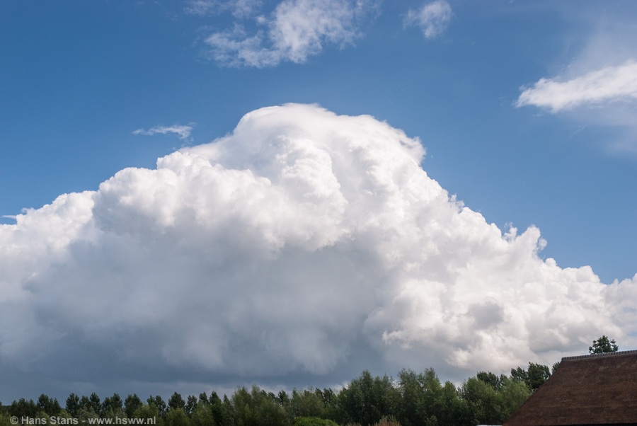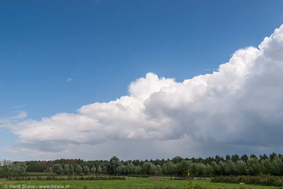 Na al het buiengeweld van gisteren zaten we in aanmerkelijke koelere lucht. Wel tamelijk vochtig en mede onder invloed van de dagelijkse temperatuurgang kwam het in de namiddag weer tot behoorlijk convectie. Ik keek het rustig vanuit thuis aan, maar toen de convectie vrij indrukwekkend begon te worden en het tot vorming van behoorlijke buien kwam ben ik er maar weer op uit gegaan!
