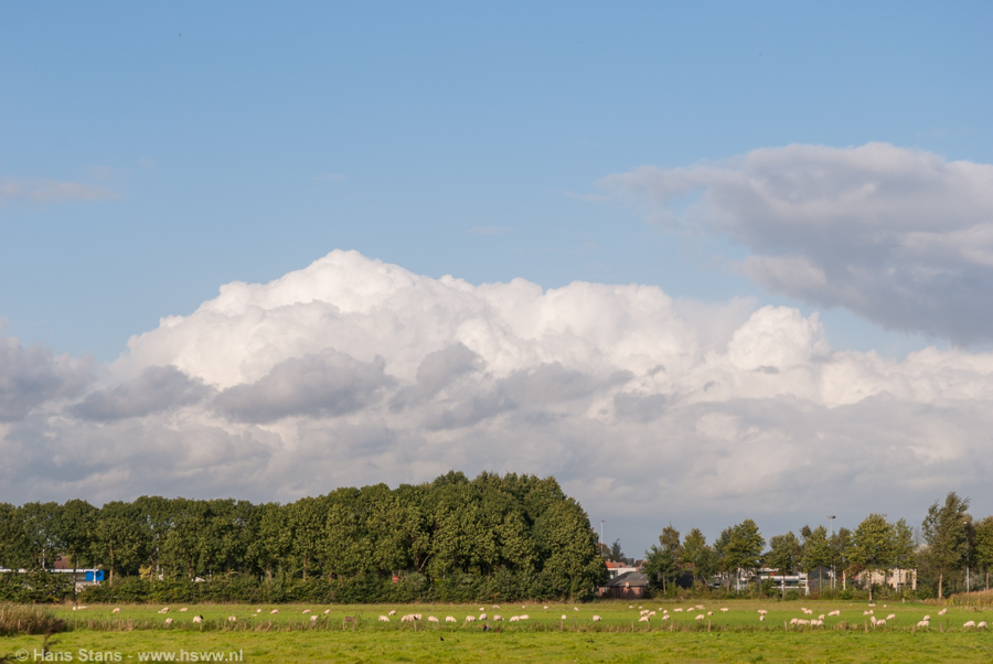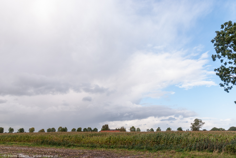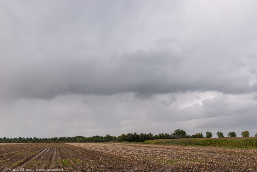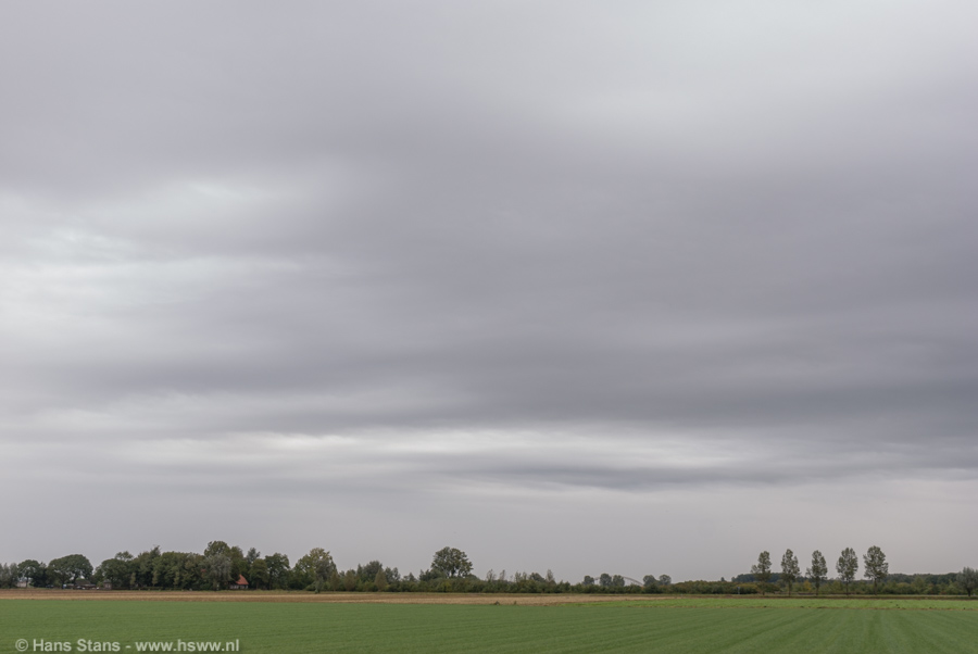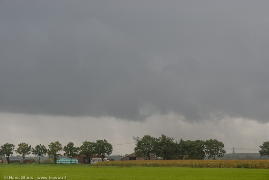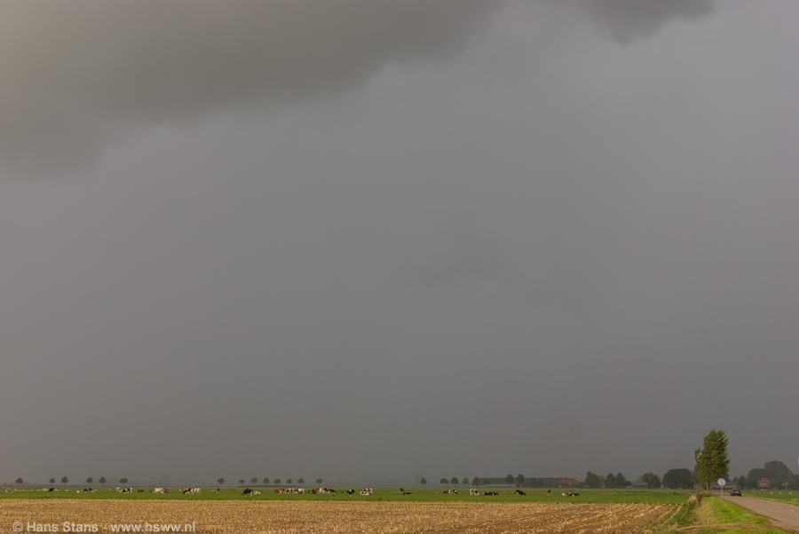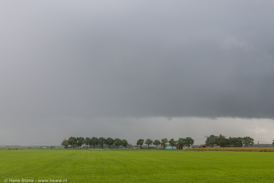 Vandaag kon ik het weer niet laten om erop uit te gaan toen zo rond 11:00 het voorziene koufront Den Bosch naderde. Er was kans op het heftiger werk! Ik piepte er vanaf kantoor een uurtje tussenuit en besloot helemaal in het open veld te gaan staan in de buurt van (Nieuw-) Engelen en Bokhoven. Ik was maar net bijtijds en moest voordat ik op plaats van bestemming was even stoppen om dit mooie en dreigende beeld vast te leggen: