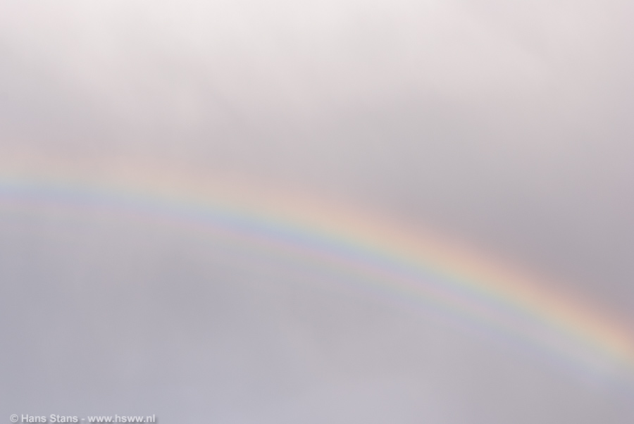 Toen de secundaire boog vervaagde verschenen er boventallige bogen ('supernumaries') aan de primaire boog. Hieronder een tweetal wat verder bewerkte foto's waarop dit te zien is: