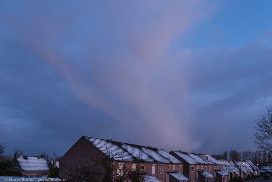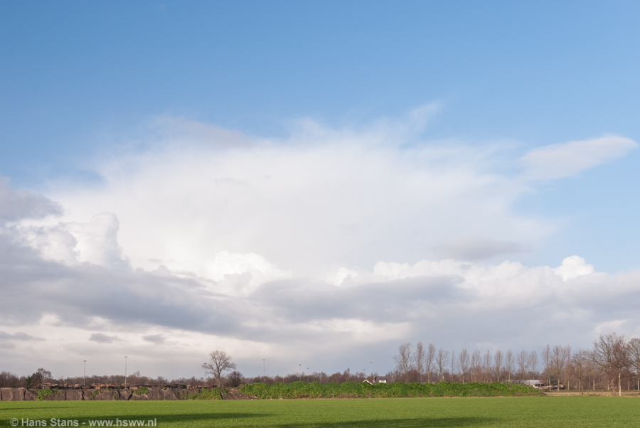 Later kwamen we terug van de boodschappen en zagen we hoe nieuwe winterse buien zich aandienden. Ik maak gauw een paar foto's van die cb-dikzakken en besluit om als er 's-middags buien in de buurt zijn, naar een zichtpunt te gaan voor wat 'winterse stormspotting'.