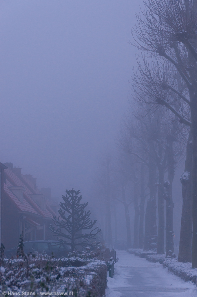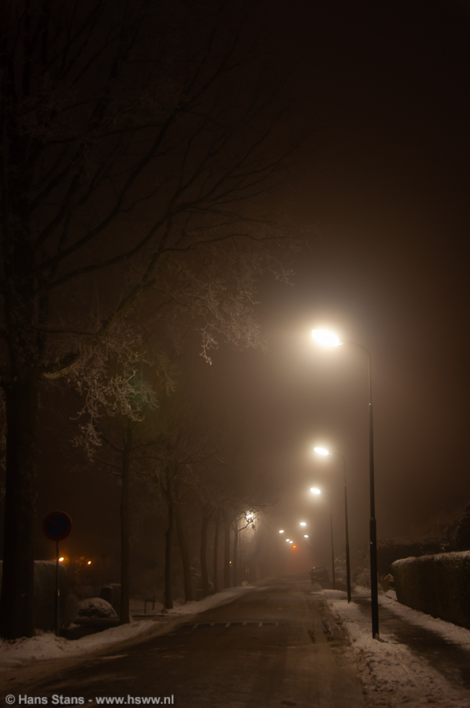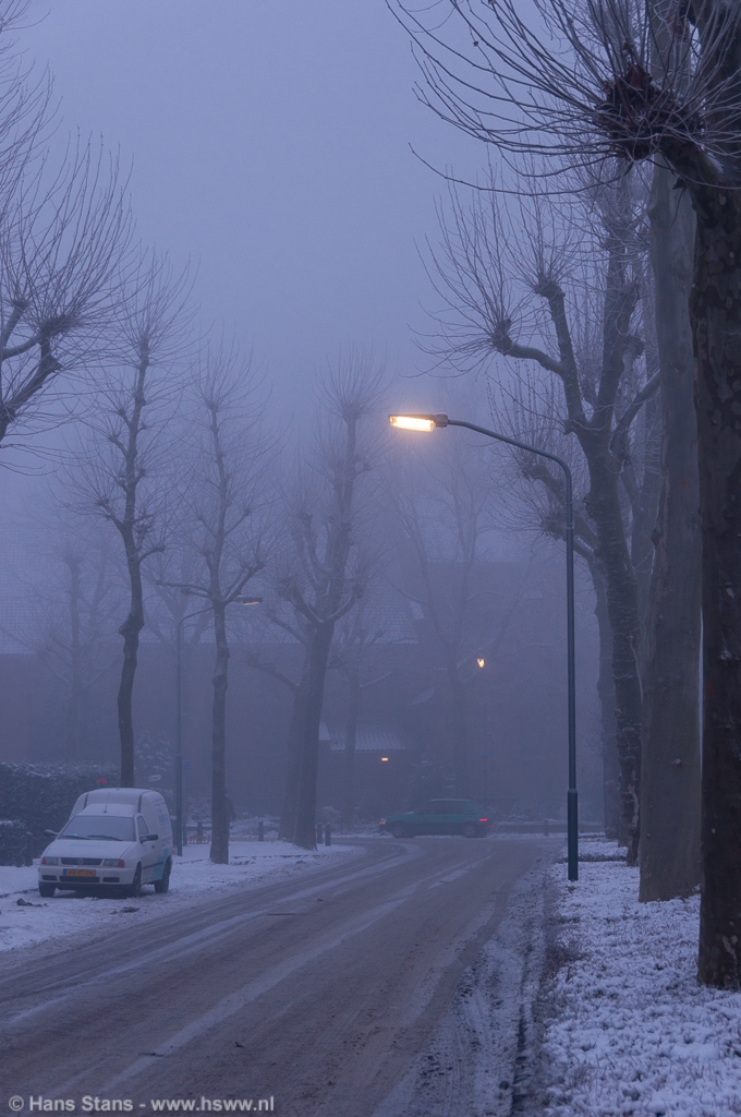 18:17 bijna thuis. Nog steeds mist en vorst natuurlijk (!), het zou voor middernacht al weer bijna streng vriezen: