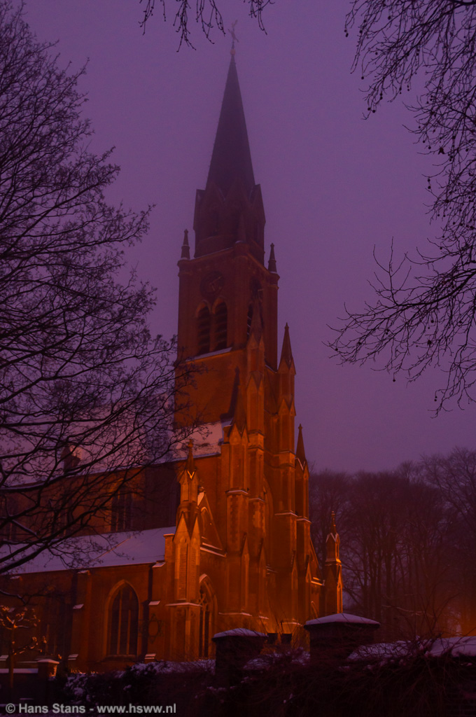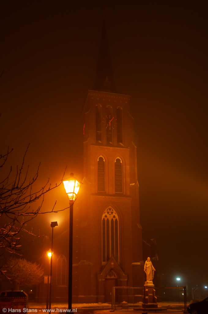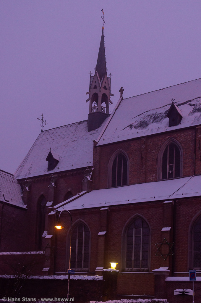 In de namiddag moest ik naar Gemert en ik parkeerde om 16:30 bij de grote kerk (wat vreemd "kerk van Sint-Jans Onthoofding" genaamd). Maar goed dat de sneeuw van het hoge dak in de dakgoot terecht kon, anders was het een probleem geworden voor het voetgangerspad direct naast de kerk: