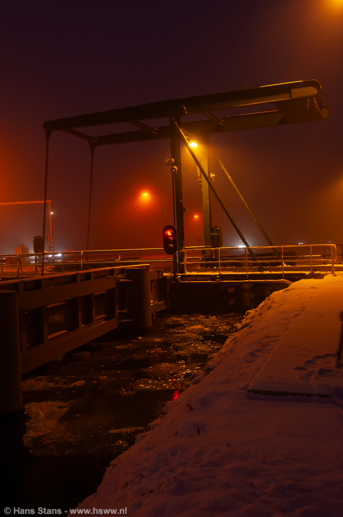 Vreemd genoeg "onder" de brug weinig ijs te zien, terwijl iets verder op ("boven" de brug) de ijsgang best zwaar te noemen was. Een gevolg van sluiswerking verderop bij Veghel?