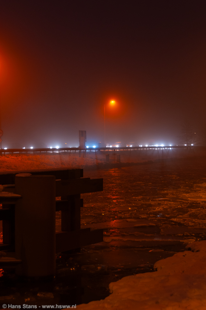 17:30 e.v. Op de terugweg nog even naar het kanaal t.h.v. Zijtaart/Keldonk. Druk op de N279 daar aan de andere kant, beetje naargeestig gezicht zo, al die wachtende auto's in de mist en kou.