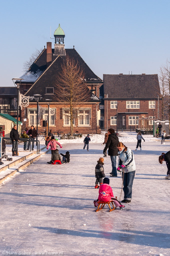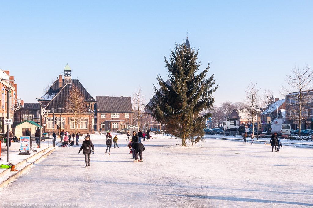 In Boekel hadden ze het mooi voor elkaar, gewoon het plein midden in het dorp vol laten lopen, alle voorzieningen erbij, en hoppa, ijspret!