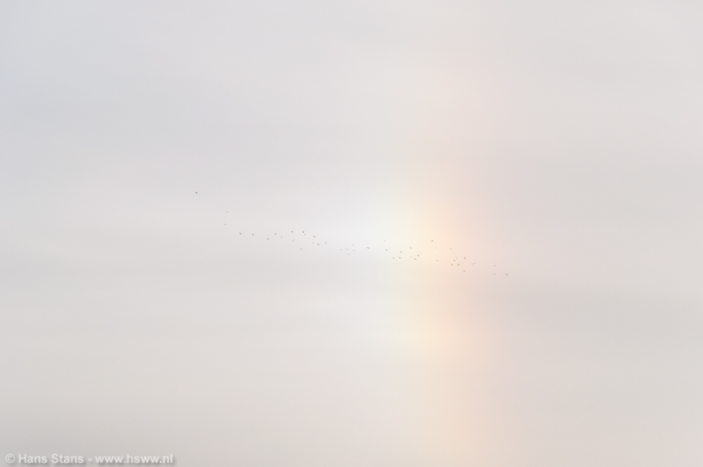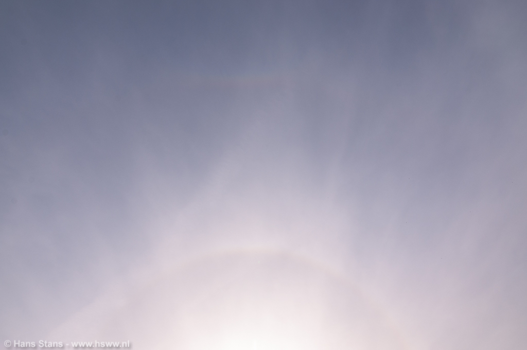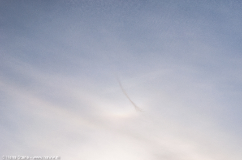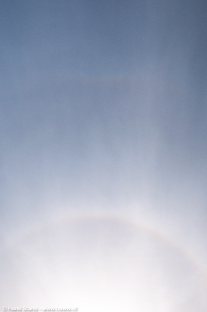 Een fraaie ochtend met voor de liefhebbers daarvan fraaie optics, de kleine kring al dan niet in fragmenten, bijzonnen maar ook de centrumzenithale boog (CZB), supralaterale boog (SLB) en bovenraakboog (BRB). En vooral die SRB is dan toch al een zeldzamere optic. De eerste serie foto's gemaakt van 07:40 - 09:15.