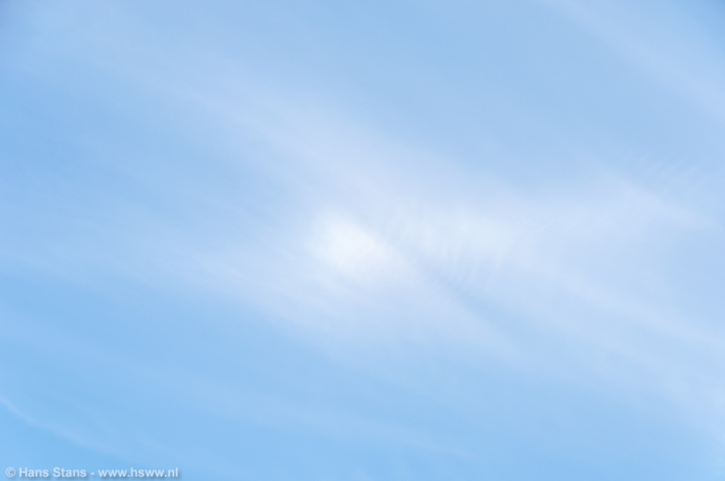 Mooie scherp getekende sluierbewolking en dus opletten of er optics te zien waren. En jazeker, en het waren nog wel een paar minder vaak voorkomende ook! In een fragment parhelische ring was een iets diffuse tegenbijzon zichtbaar. Even twijfelde ik nog of het niet kwam door de wat dikkere sluierbewolking maar het ding stond op de juiste plek en bleef daar staan - ook toen de bewolking langzaam verder schoof.