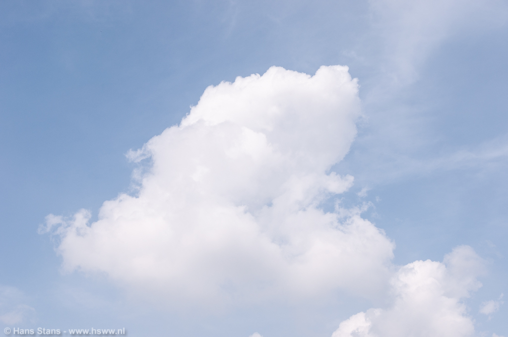 Weg met de grijze gelaagde bewolking, nu weer fel beschenen cumuli met de neiging vooral verticaal te groeien:
