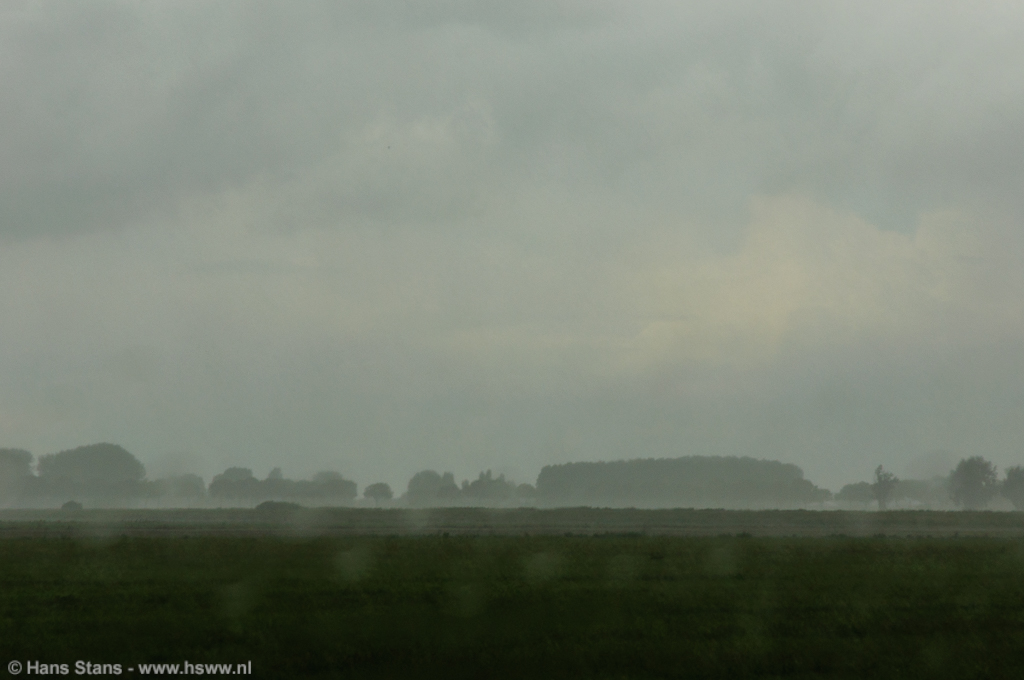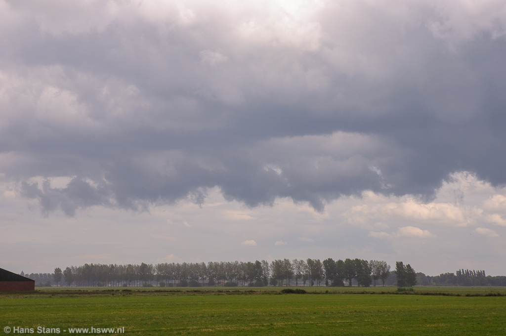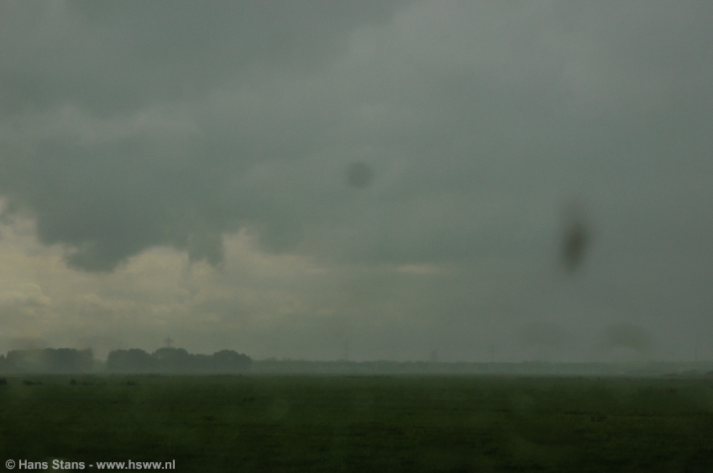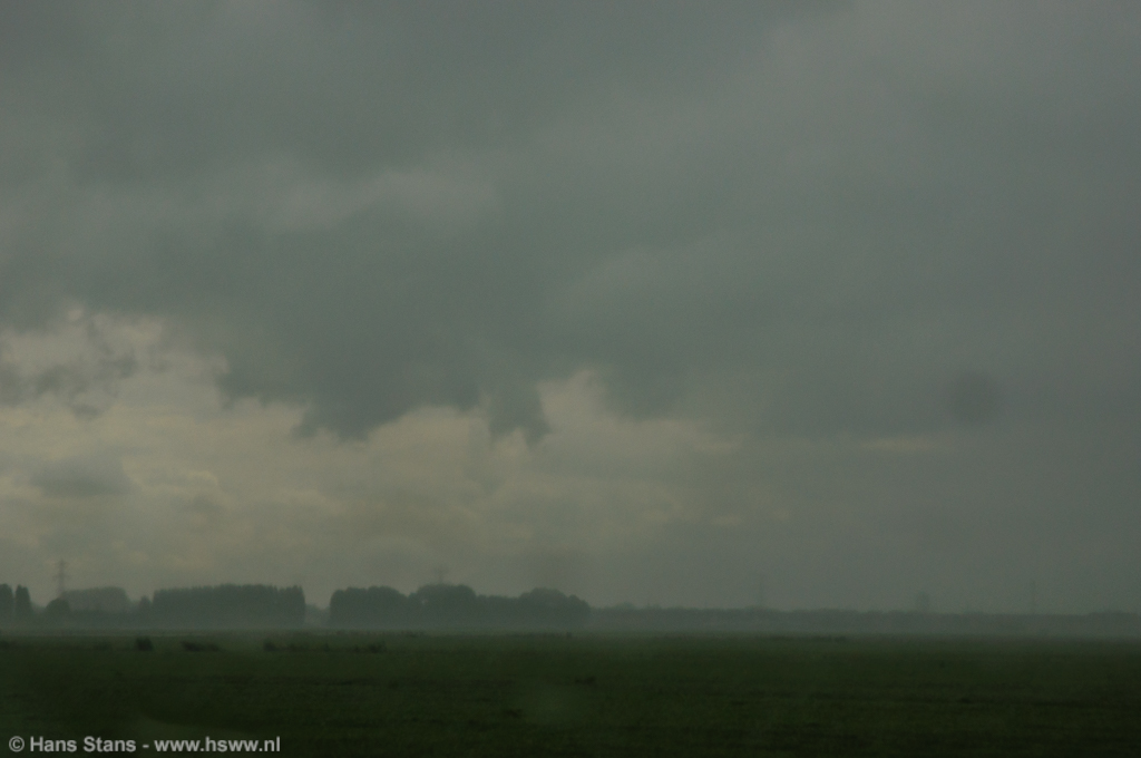 Aanvankelijk dus enkele mooi vrijstaande buien met soms dankzij de LLS toch fraaie structuren mede door de lage wolkenbasis. Ik liet me overlopen door de eerste en volgens mij hefstigste bui.