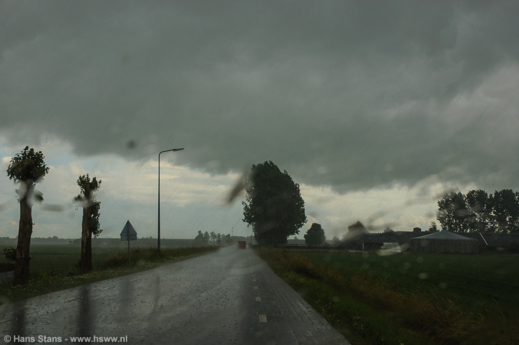 Zeer zware neerslag met forse windstoten en een erg turbulente wolkenbasis waaronder snelle stijgbewegingen te zien waren, ik dacht echt even kans te hebben een hoos te gaan zien: