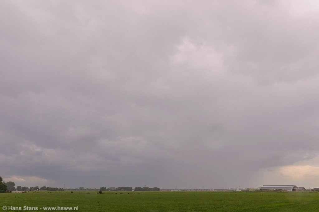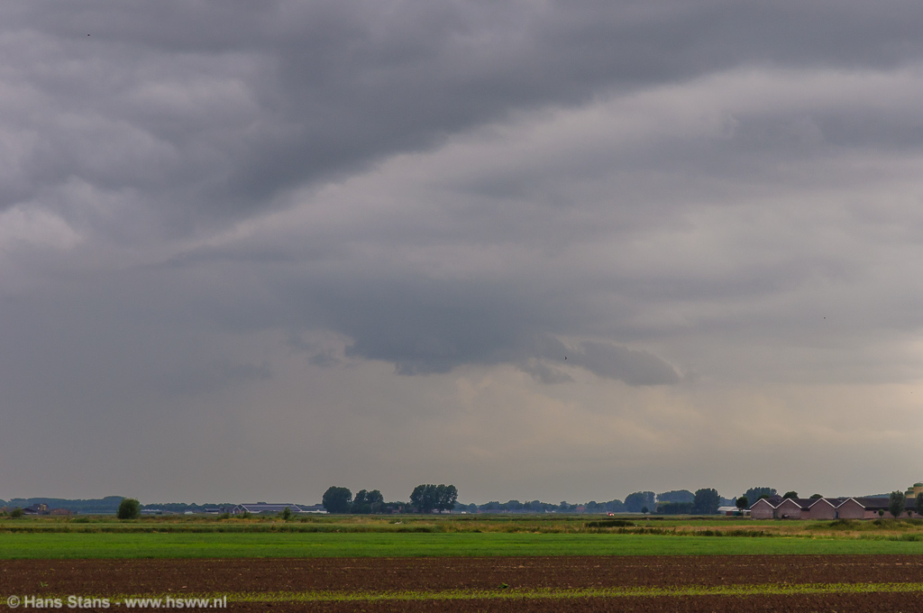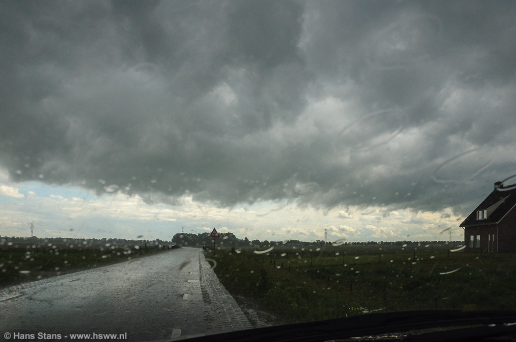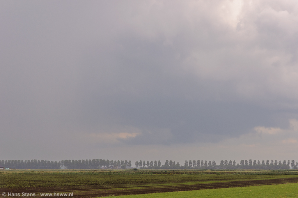 Soms dus erg mooi structuren zoals deze. De wolkenbasis erboven zag ik mooi tegen de klok in indraaien, indrukwekkend! Maar het zou allemaal niet lang duren want er kwamen steeds meer donkere zware buien met vooral veel regen en hooguit een enkele slag onweer opzetten.