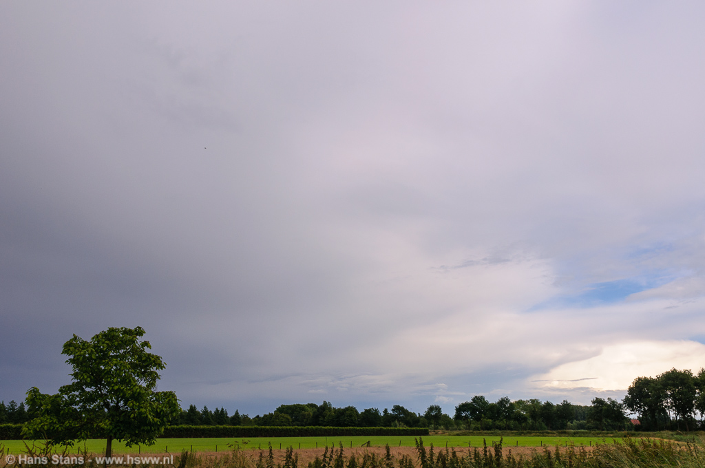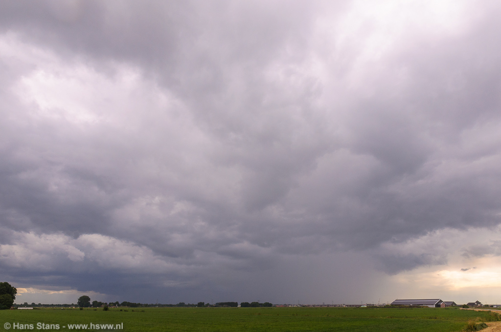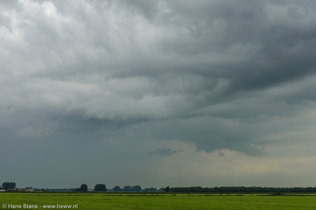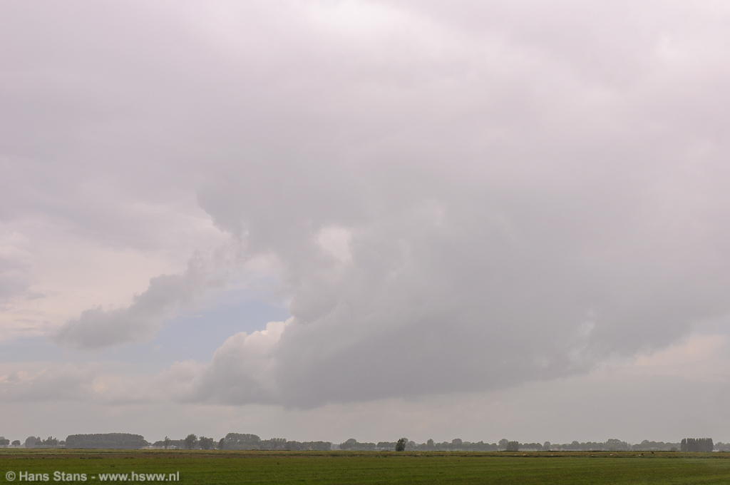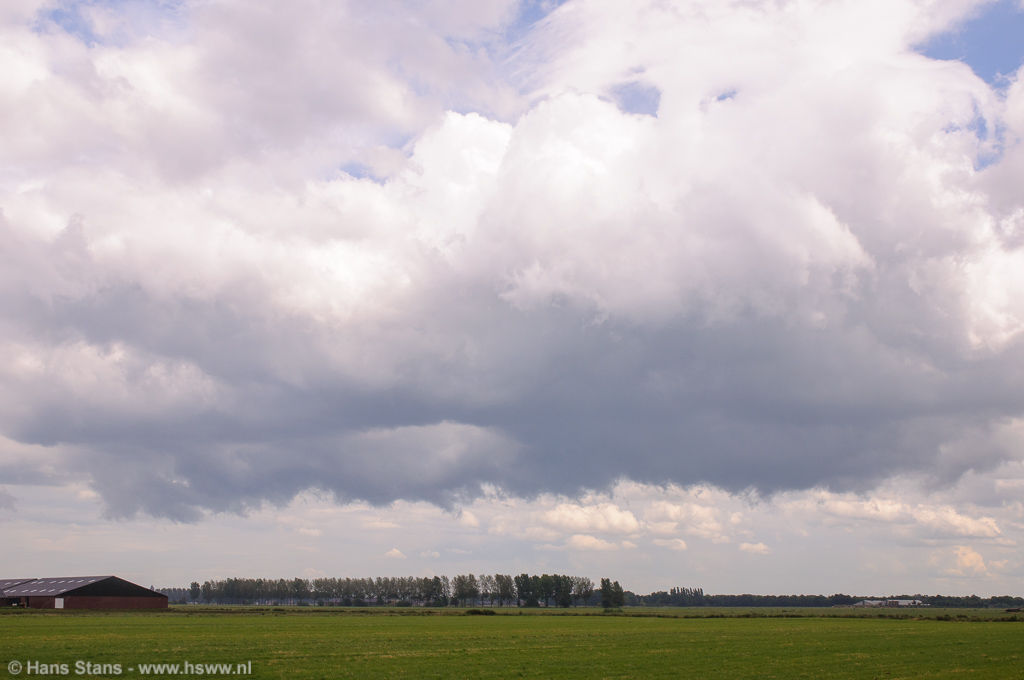 Soms dus erg mooi structuren zoals deze. De wolkenbasis erboven zag ik mooi tegen de klok in indraaien, indrukwekkend! Maar het zou allemaal niet lang duren want er kwamen steeds meer donkere zware buien met vooral veel regen en hooguit een enkele slag onweer opzetten.