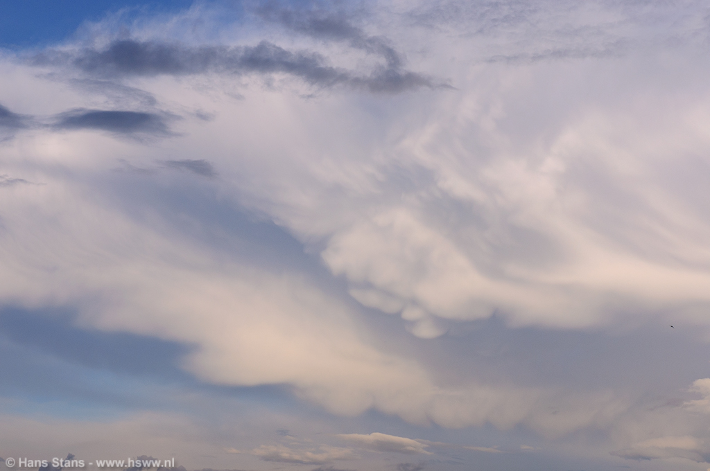 Op de avond nog vanuit thuis mammatus-vorming gezien en bij zonsonder nog een "rode" regenboog.