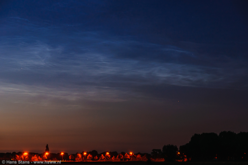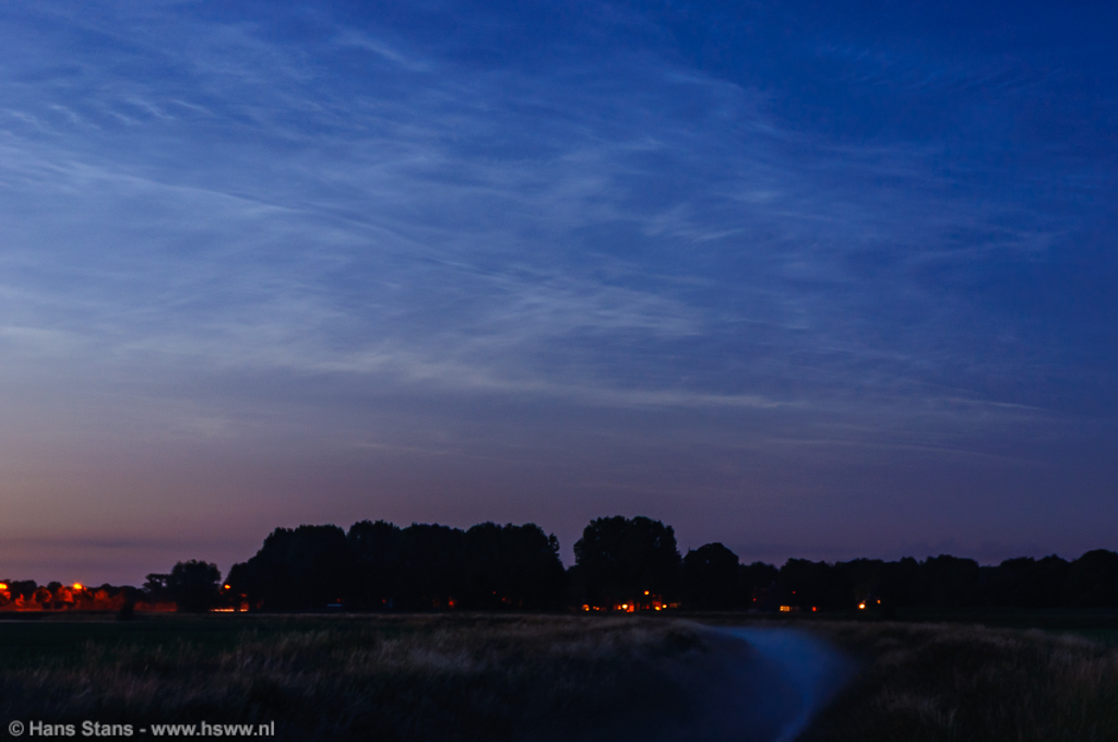 Volgens kenners kans op lichtende nachtwolken vanavond en die kans wilde ik dus graag benutten fotogewijs. Gelukkig was mijn lief zo lief om mee te gaan zodat ik niet alleen stond te wachten op wat misschien komen zou. Tijdens de diepe schemer nog geen teken van NLC's (zie de foto hierboven) maar ietsje later kwamen ze dan toch tevoorschijn en hoe. Foto's gemaakt langs de N279 t.h.v. Middelrode.