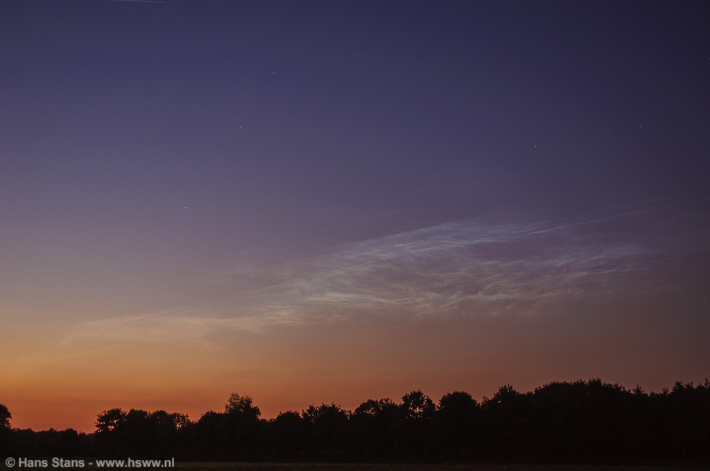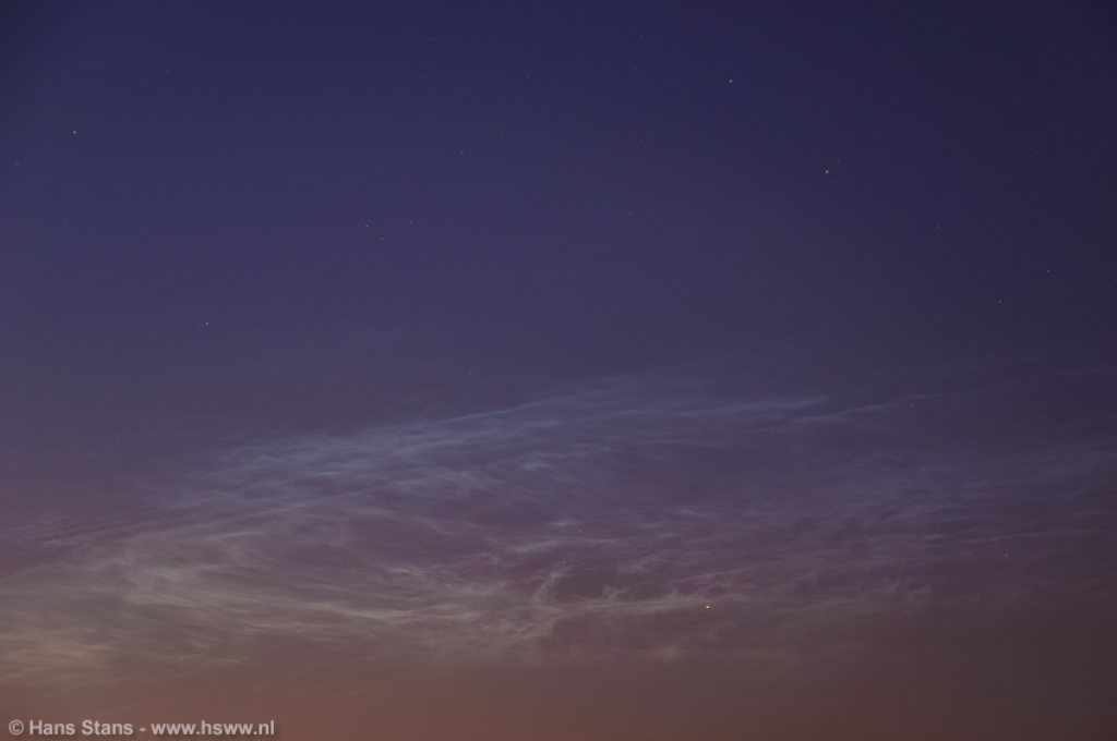 Vanavond alweer lichtende nachtwolken! En ik dacht nog wel dat ze erg zeldzaam waren - of we maken een uitzonderlijk jaar mee (?) Het was wel een minder display dan eergisteren, maar ze zijn wel de derde keer te zien in dik een week (nou ja, negen dagen) tijd.