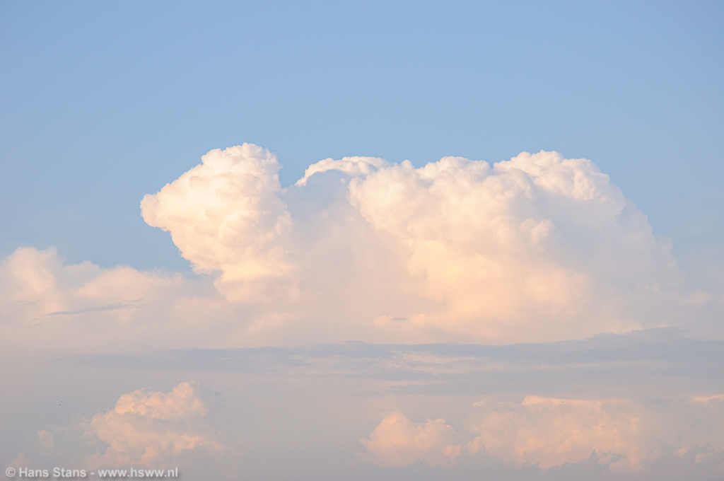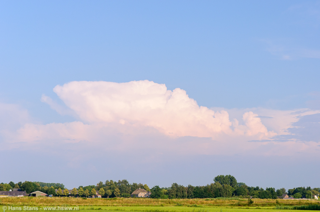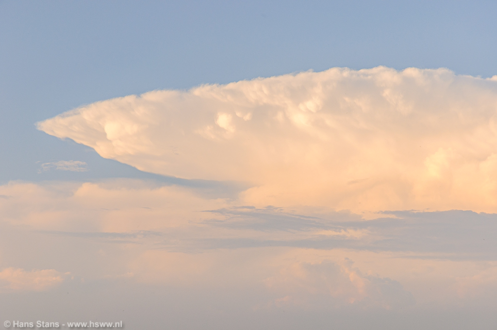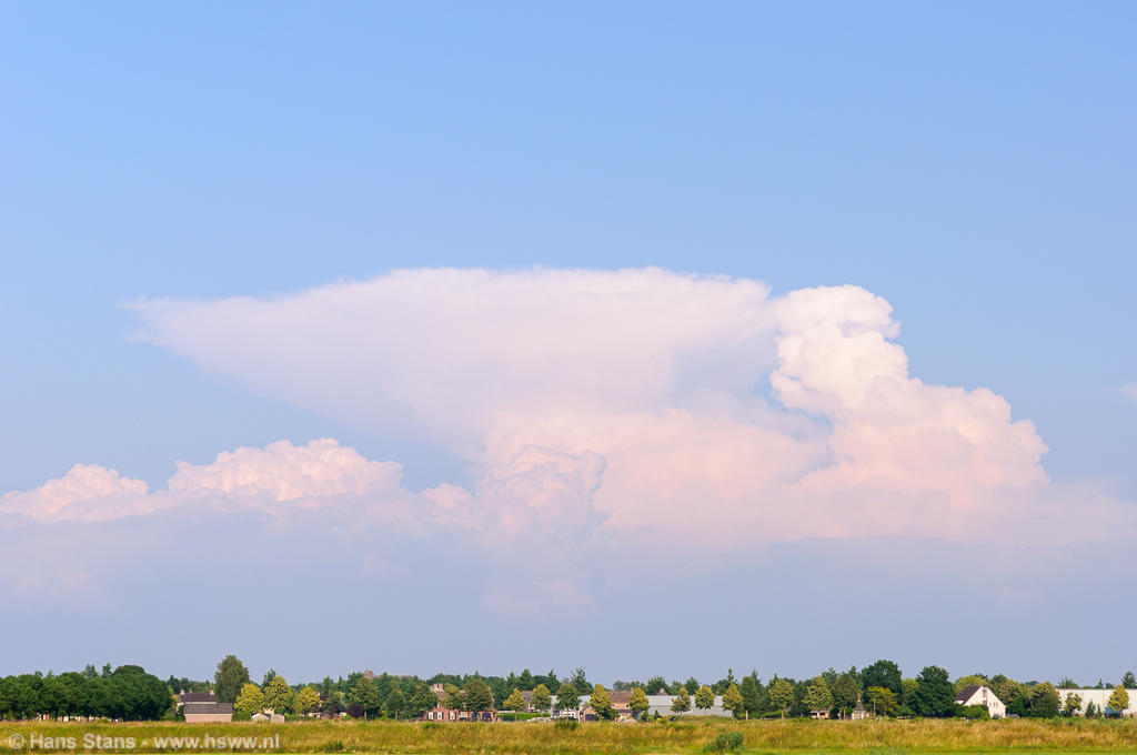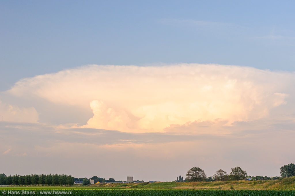 Rond 20:30 werd ik op het Weerwoord-forum door Jan uit Zaltbommel erop gewezen dat in noordelijke richting weer mooie exemplaren stonden. Ik ging kijken en inderdaad! Mooie krachtige torens kwamen omhoog, dat had ik eigenlijk niet meer verwacht zo aan het einde van de dagelijkse gang. Er op uit dus, op zoek naar een zichtpunt. Toen bleek al snel dat er wat meer oostelijk eigenlijk nog mooiere stonden.
