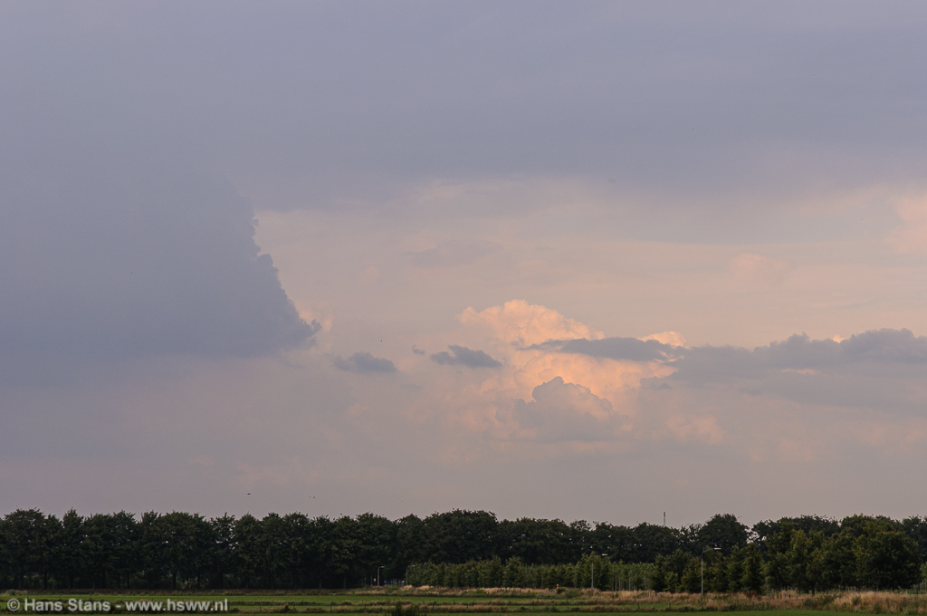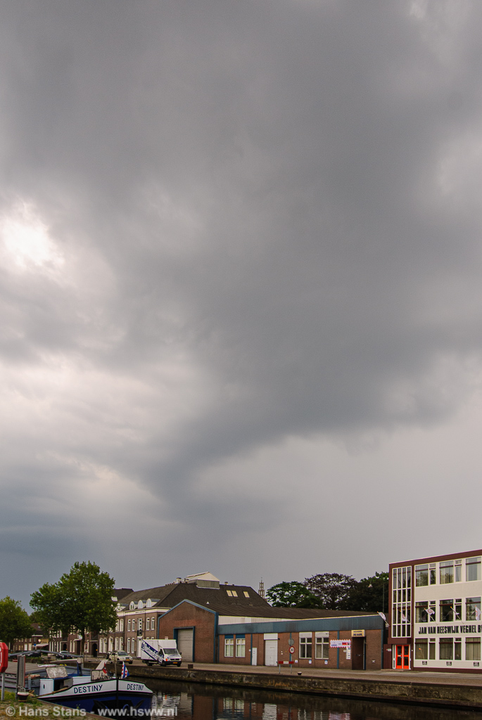 19:05 Aan de Veghelse binnenhaven. Bijna aan het adres waar ik verwacht wordt en dus houdt het voor mij hier op, ik laat de buien die in ONO richting verder trekken gaan. Ik zie op Weerwoord later de nodige foto's "verderop" gemaakt van shelfclouds en mooie wolkenstructuren.