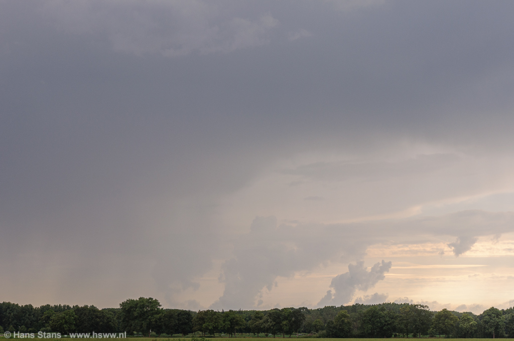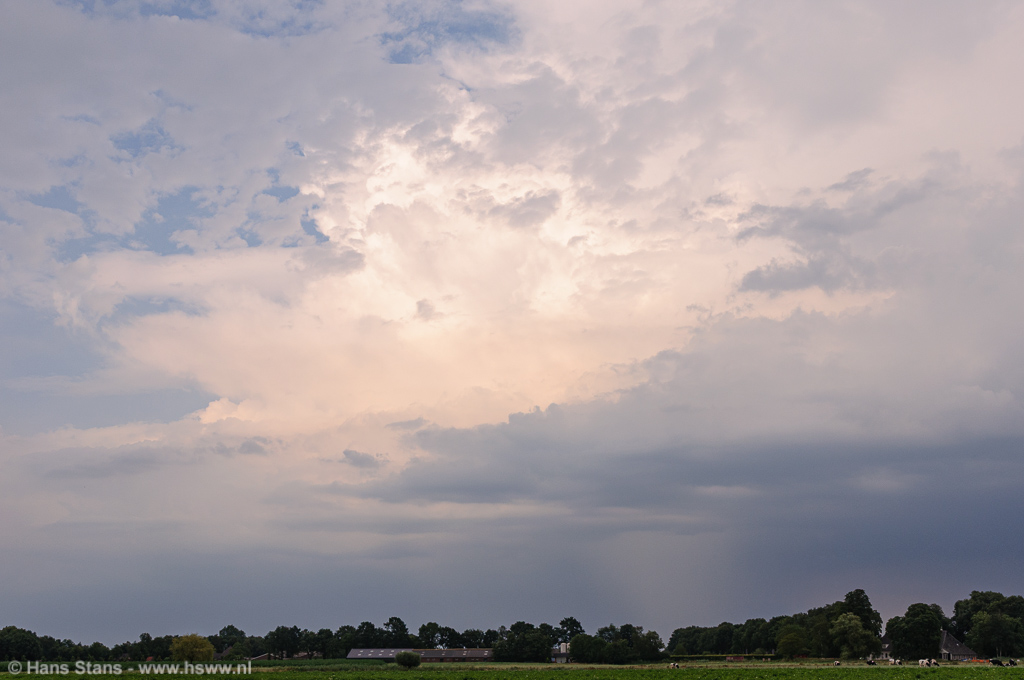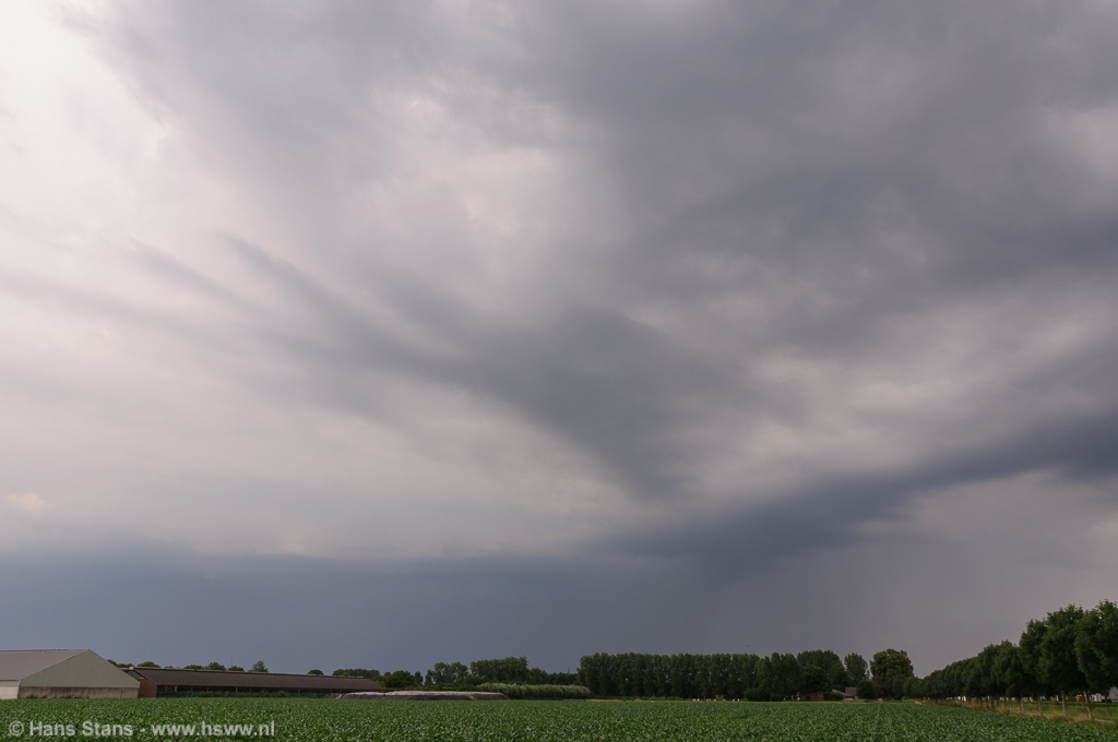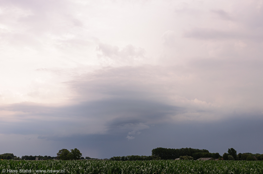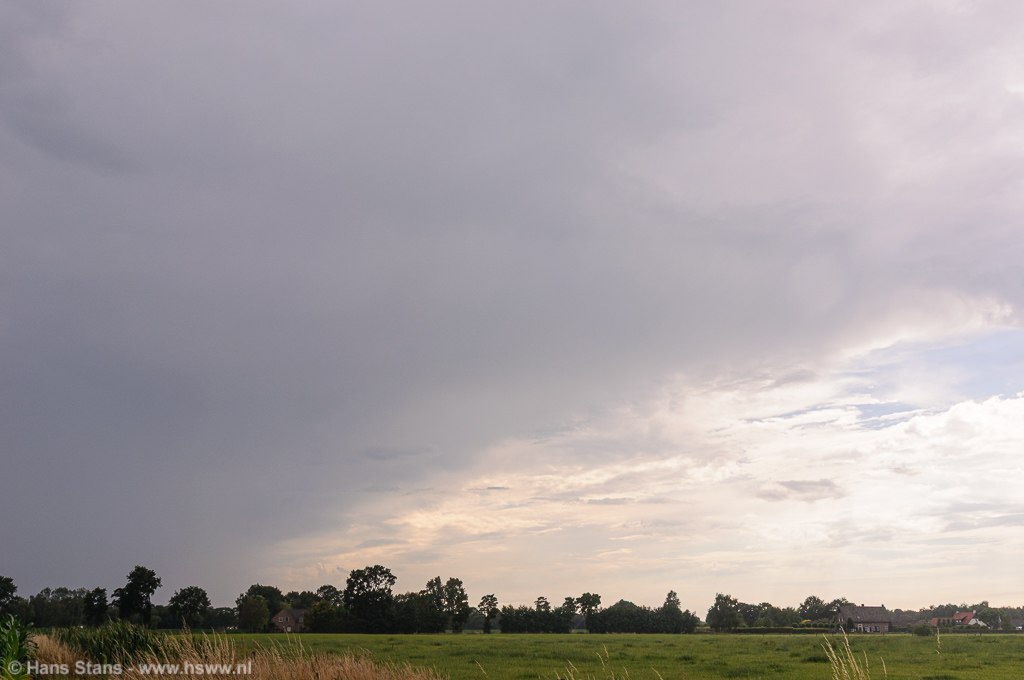 Ik had er op zich niet veel van verwacht vandaag. De vooruitzichten waren niet slecht, voldoende snelheidsschering met tot 500-1000 J/Kg CAPE bood ruimte voor wat flinke onweersbuien, mogelijk behoorlijk georganiseerd. Maar ik moest eigenlijk naar een verjaardag waar ik dan toch uiterlijk vroeg op de avond terecht moest komen en was natuurlijk alweer bang dat juist op dat moment de zaak pas echt op gang zou komen.