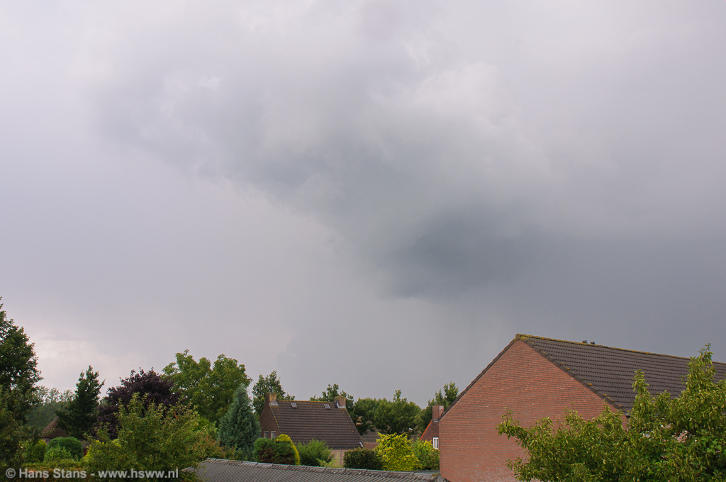 Zo tegen 13:30 kwam er een bijzonder gevormde bui voorbij die meteen mijn aandacht trok. De eerste twee foto's hieronder vanuit het badkamerraam 😄 en toen er toch maar even op uit voor nog een paar foto's ervan.